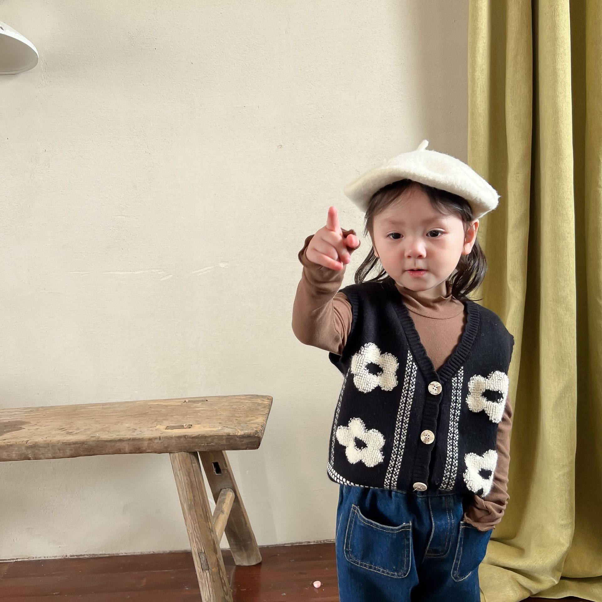 描述:品牌:77_bebe,货号:H609,货源类别:现货,适用性别:女,风格:韩版,产地:浙江,适合年龄段:婴幼童(1~3岁,80~100cm),适合季节:春秋,春季,秋季,面料工艺:柔软处理,款式:开衫,图案:花朵,厚薄:普通,是否连帽:不连帽,图片实拍:实拍有模特,是否库存:否,上市年份季节:2022年秋季,元素:卡通,可爱,拼色,潮范,平车针距12~14针/3cm:是,毛头/杂余线头是否修剪:全部修剪干净,面料名称:棉,主面料成分:聚酯纤维(涤纶),主面料成分含量:29.9,安全等级:B类,闭合款式:单排扣,颜色:黑色马甲,棕色打底衫,牛仔喇叭裤,适合身高:73CM,80cm,90cm,100cm,110cm,120cm,主要下游平台:ebay,亚马逊,wish,速卖通,独立站,LAZADA,主要销售地区:非洲,欧洲,南美,东南亚,北美,东北亚,中东,是否跨境出口专供货源:是,