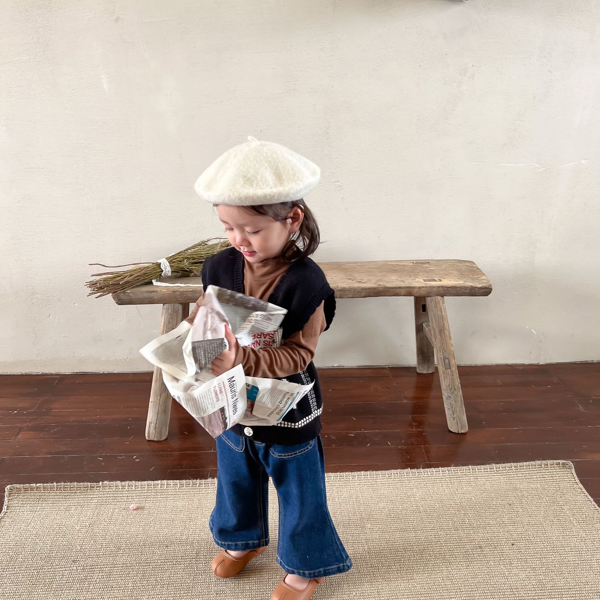 属性:黑色马甲,棕色打底衫,牛仔喇叭裤
