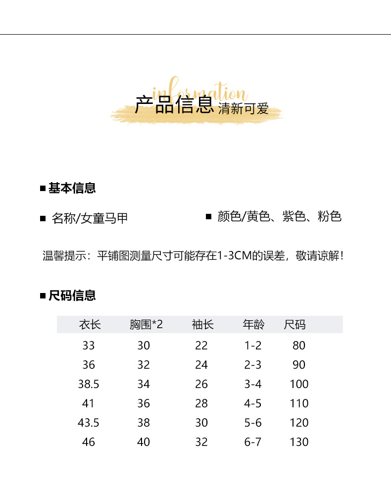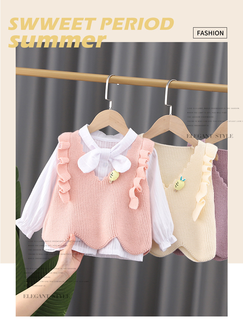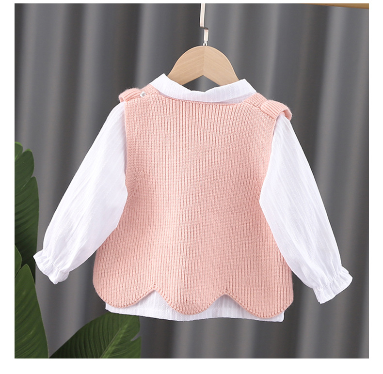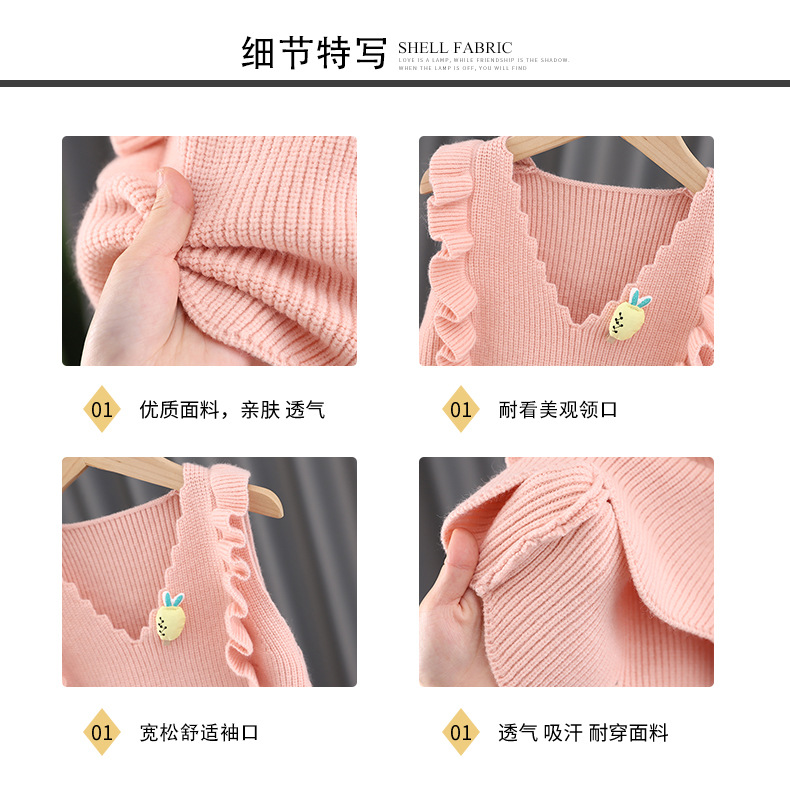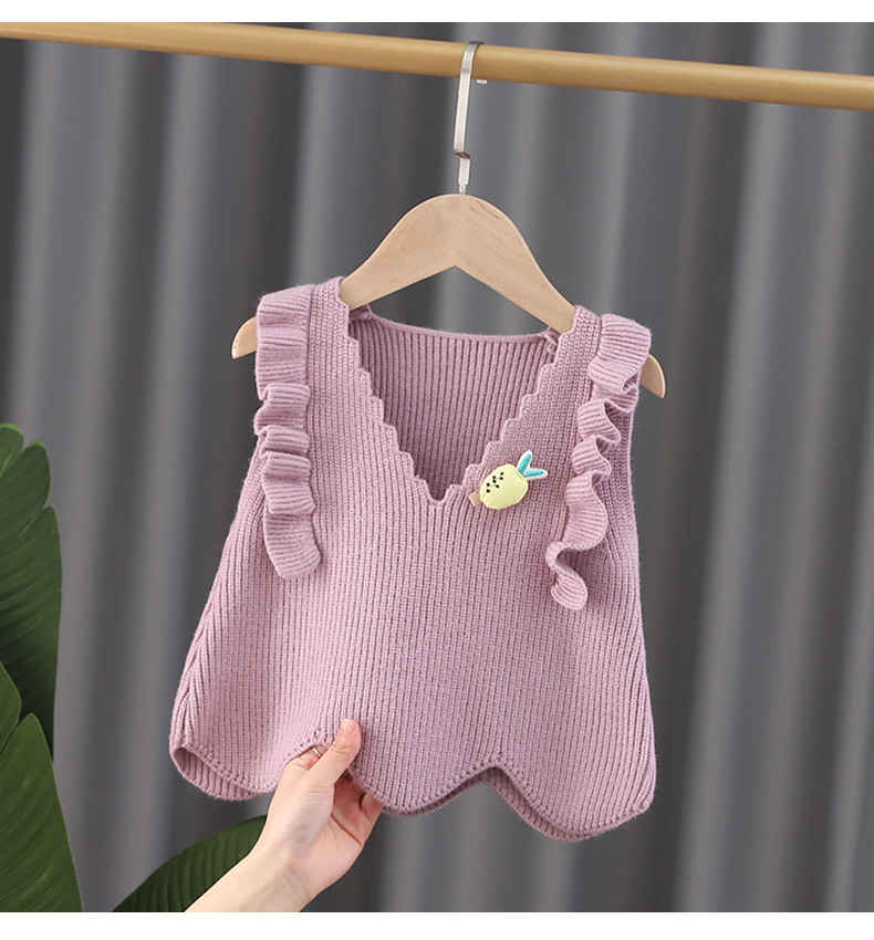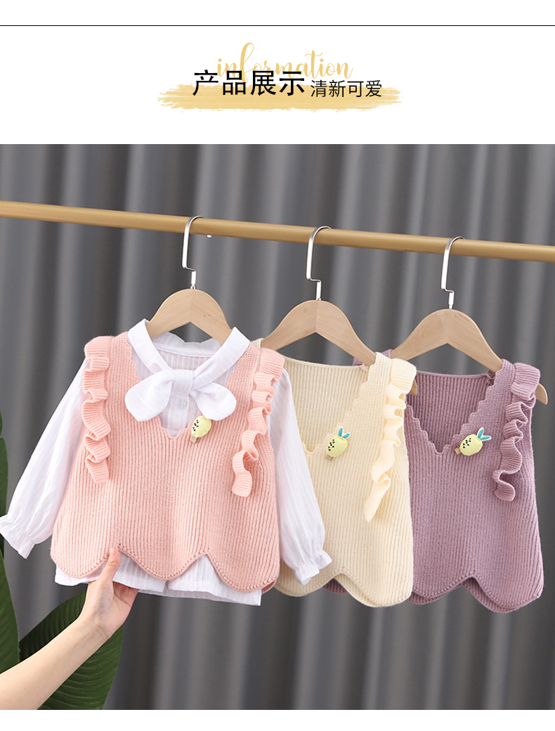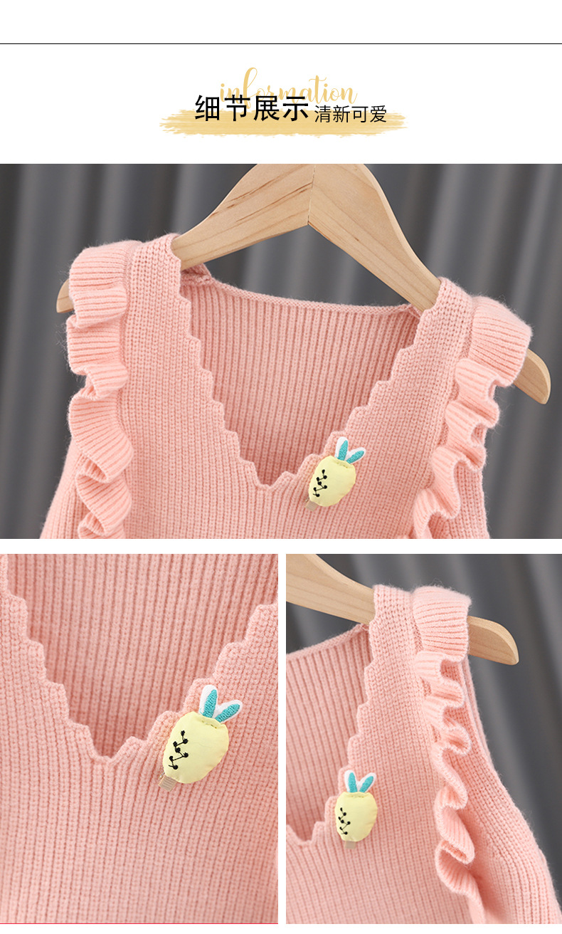标题:韩版童装秋款中小童女可爱毛线V领马甲女小童外穿萝卜洋气坎肩