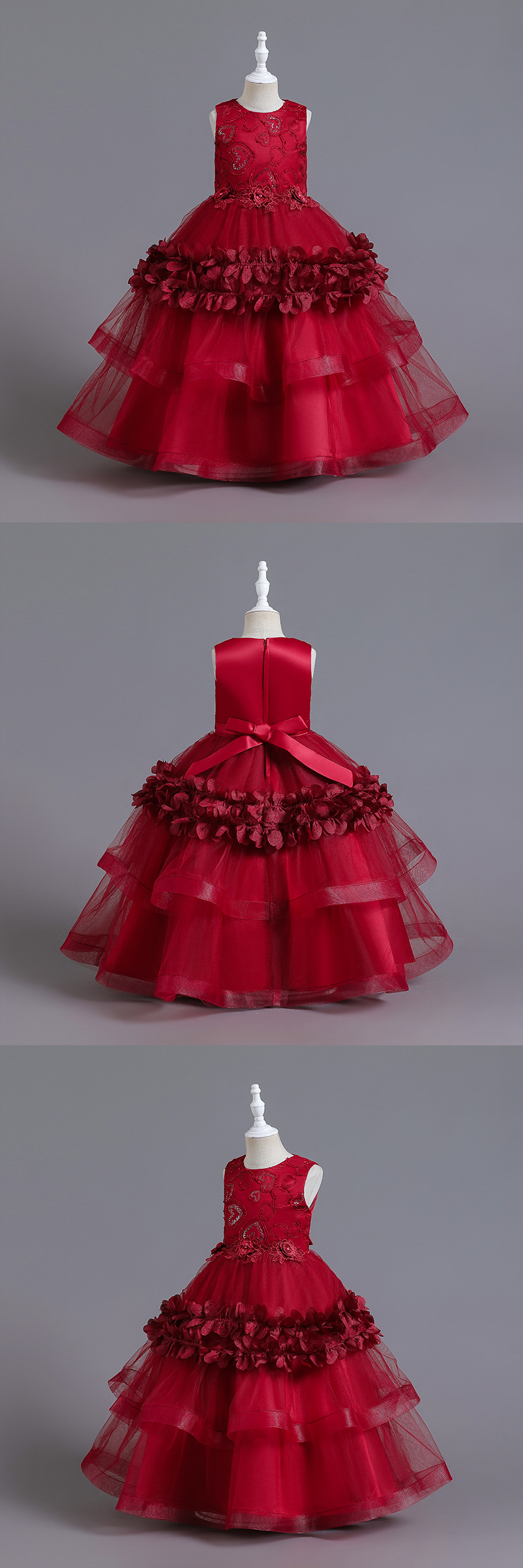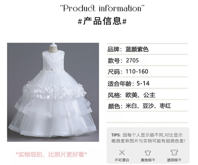 标题:新款儿童礼服婚纱公主裙女童连衣裙蓬蓬花朵钢琴主持人表演服跨境