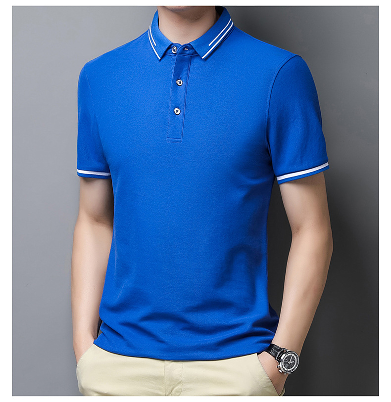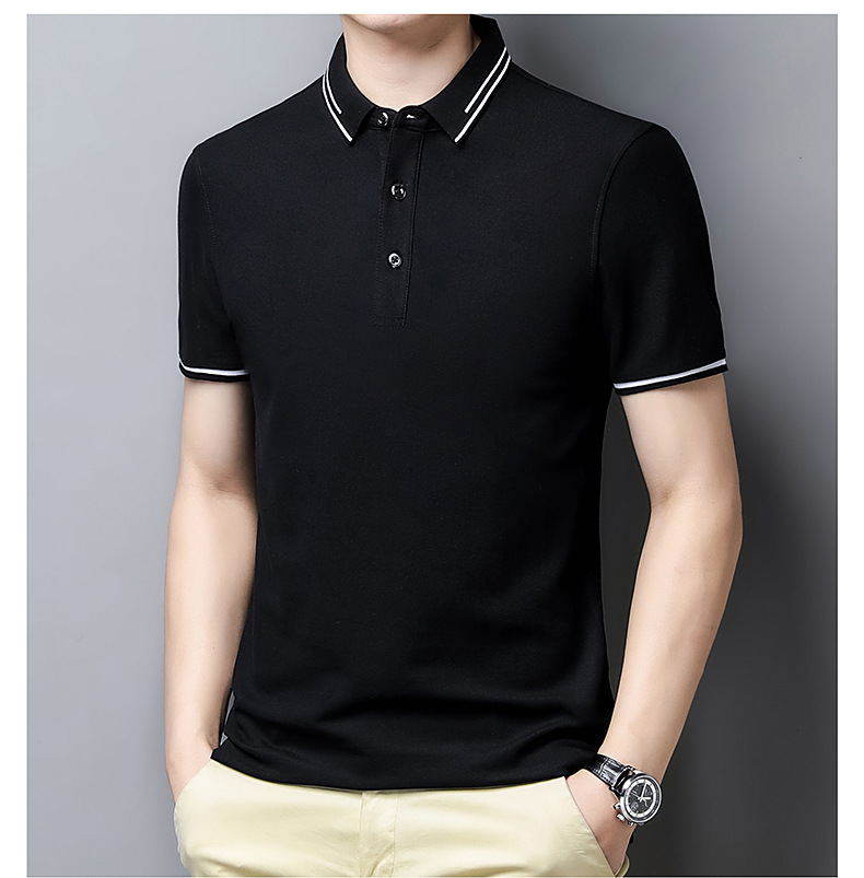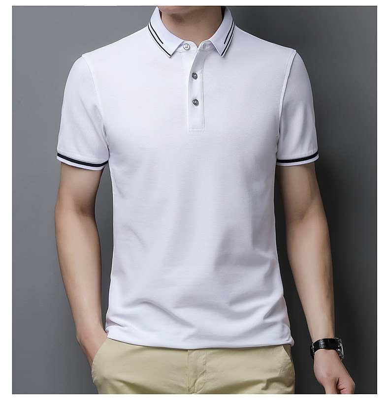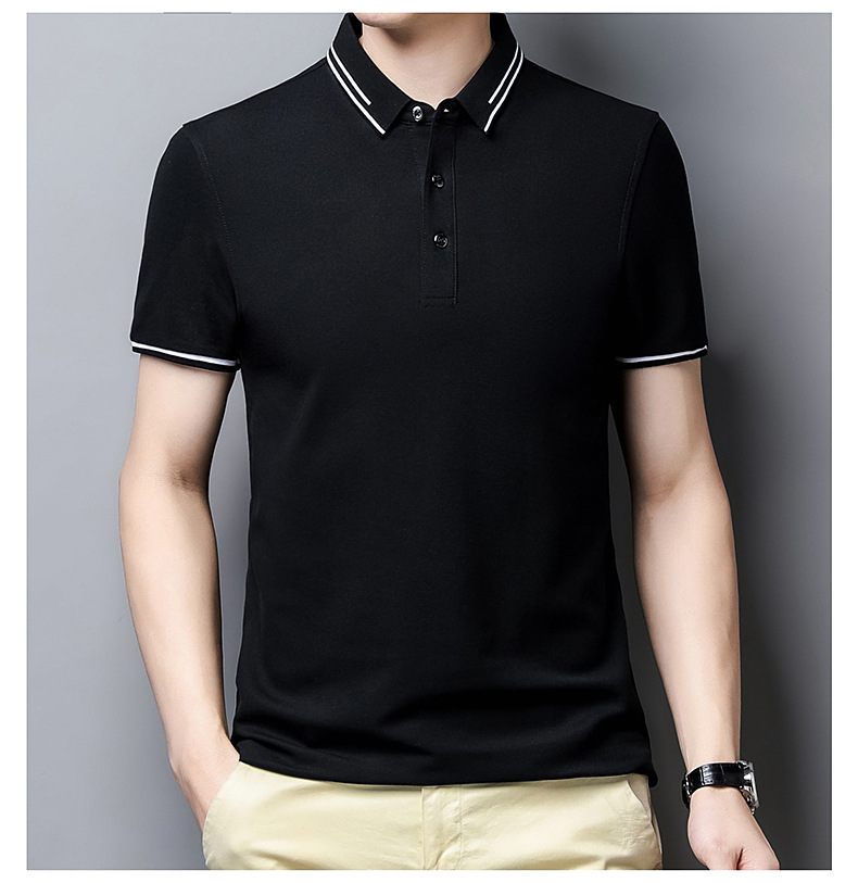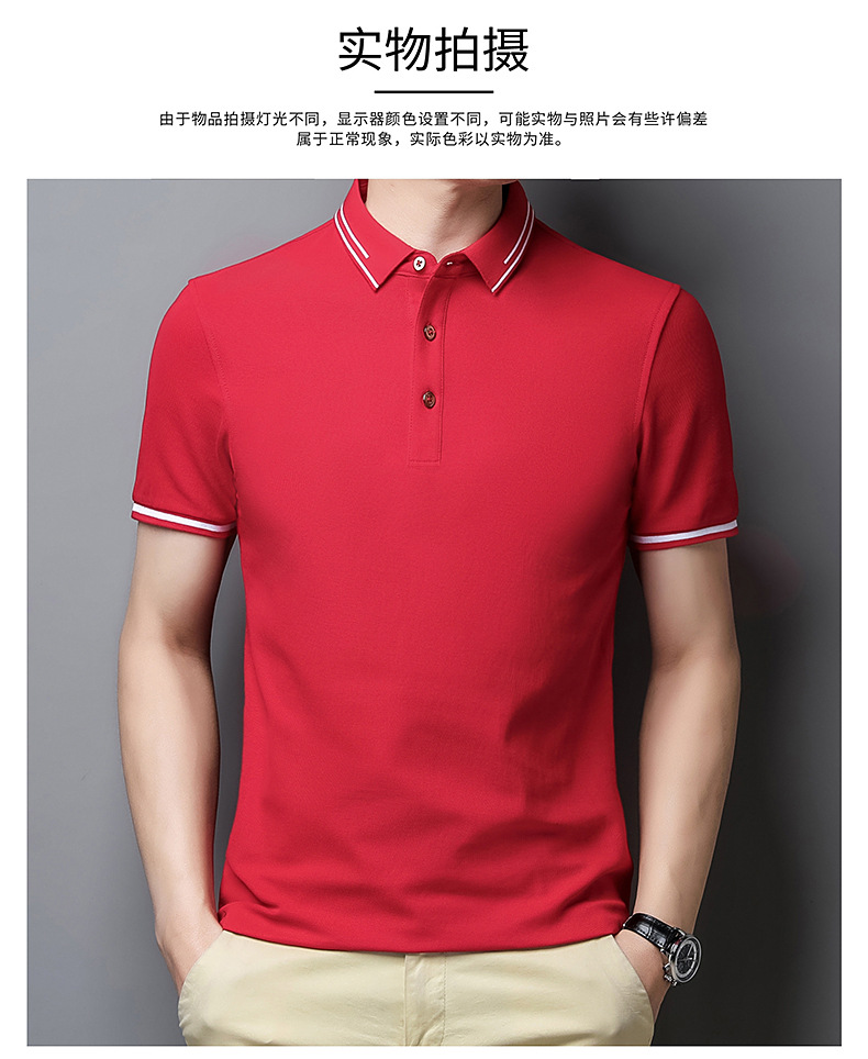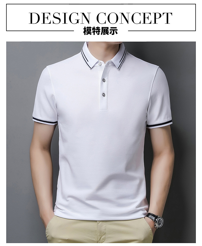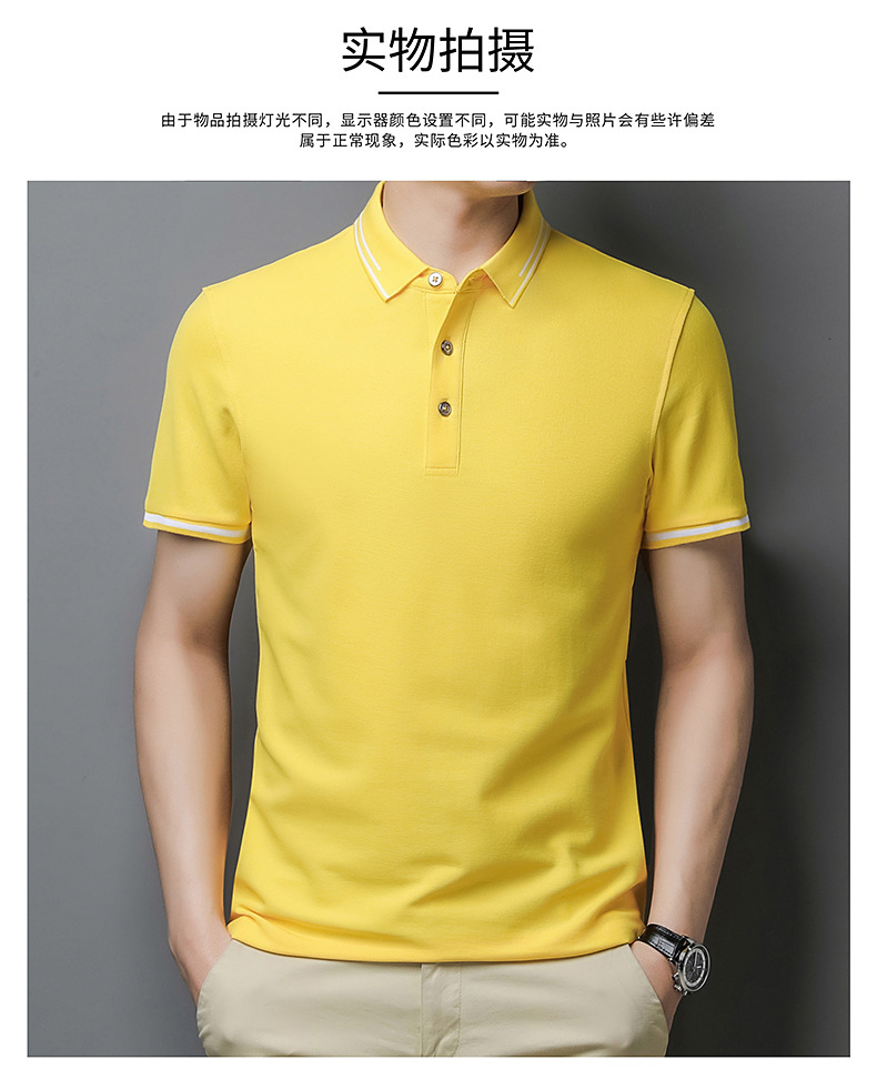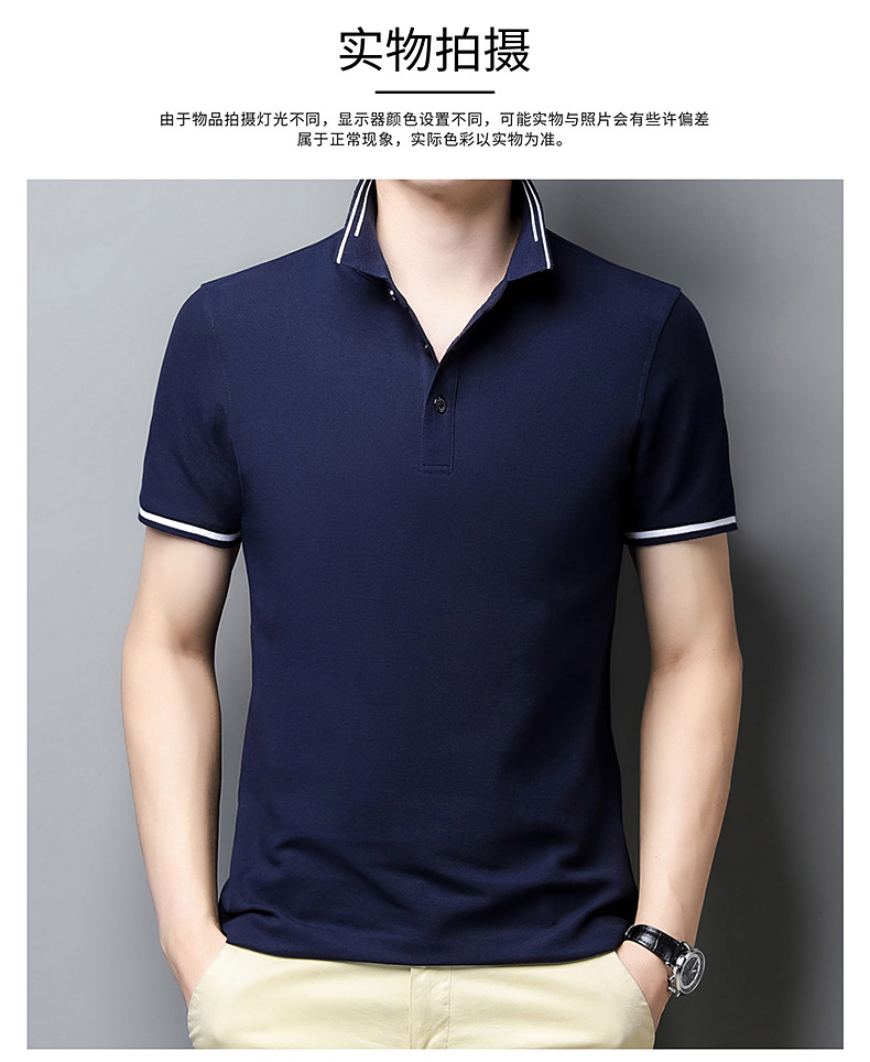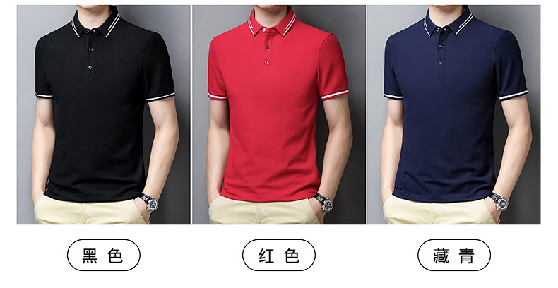 标题:男装2021新款夏季纯色短袖T恤男修身商务休闲翻领Polo衫上衣简约