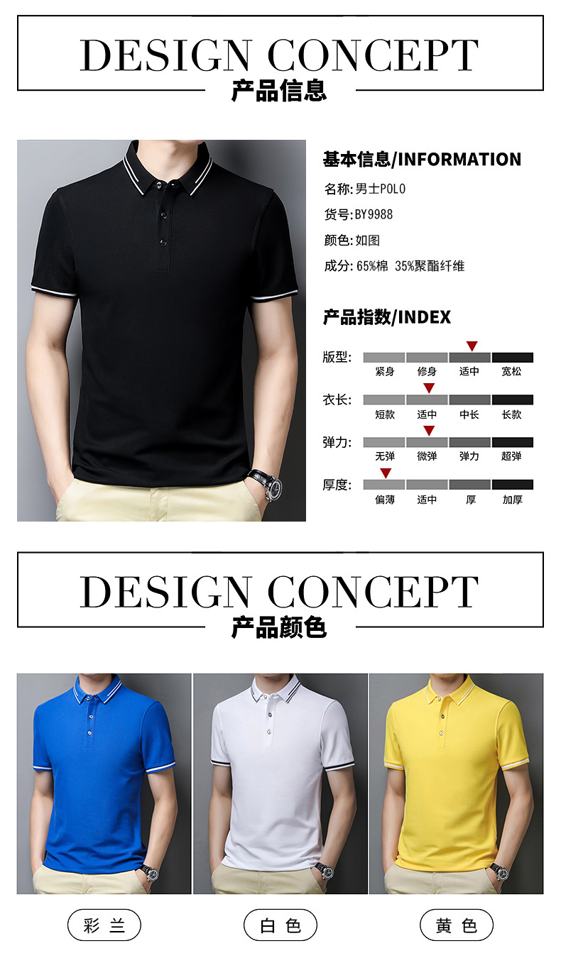 描述:货源类别:现货,风格:轻商务,袖长:短袖,版型:合体型,图案:纯色,特殊工艺:水洗,厚薄:薄款,适合季节:夏季,淘货类别:时尚都市(18-35岁),货号:BY9988,品牌:宾士格调,上市年份/季节:2021年夏季,面料名称:棉,主面料成分的含量:65,主面料成分:棉,适用场景:上班,库存类型:整单,颜色:白色,红色,黄色,黑色,藏青,彩兰,尺码:M,L,XL,2XL,3XL,4XL,5XL,主要下游平台:ebay,亚马逊,wish,速卖通,独立站,LAZADA,主要销售地区:非洲,欧洲,南美,东南亚,北美,东北亚,中东,有可授权的自有品牌:是,是否跨境出口专供货源:是,服装款式细节:开衩,原创设计货源:否,有无质检报告:否,