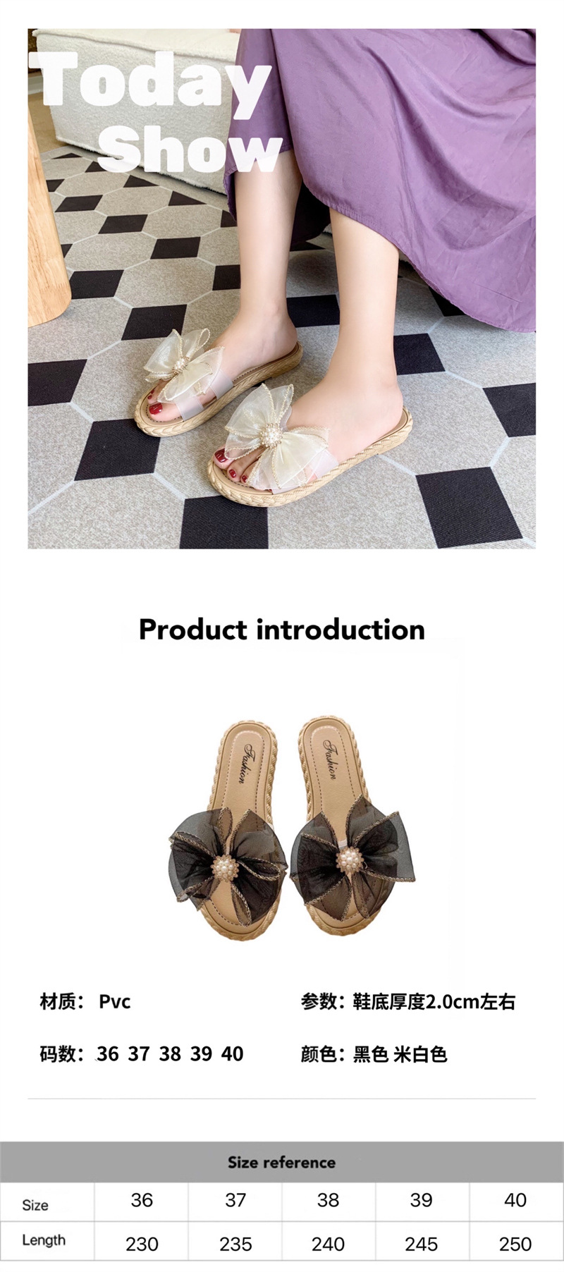 描述:产品类别:一字型,适用年龄段:成年,货源类别:现货,品牌:其他,货号:2032-4,风格:韩版,流行元素:水钻,蝴蝶结,鞋面材质:PVC,是否库存:否,是否外贸:否,鞋底材质:PVC,最快出货时间:1,质检报告:否,质检单位:sgs,图案:纯色,内里材质:OTHER,适用场景:休闲,鞋底工艺:注塑鞋,功能:透气,轻便,防滑,耐磨,毛重:其他,包装体积:实物为准,上市年份季节(上市时间):2022年夏季,最晚发货时间:8-15天,颜色:黑色,米白色,尺码:36,37,38,39,40,主要下游平台:ebay,亚马逊,wish,速卖通,独立站,LAZADA,主要销售地区:非洲,欧洲,南美,东南亚,北美,东北亚,中东,有可授权的自有品牌:否,是否跨境出口专供货源:是,闭合方式:其他,