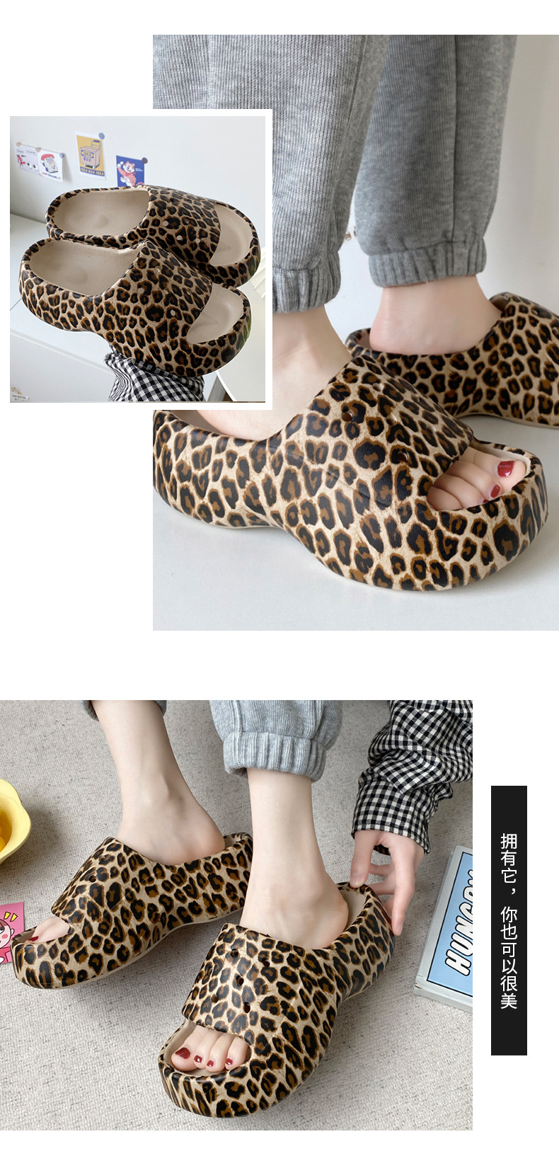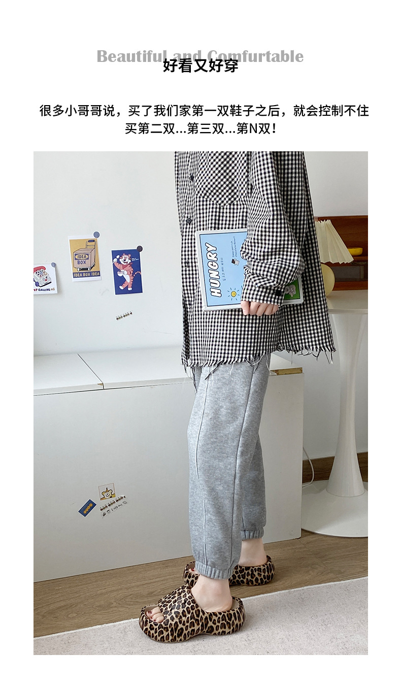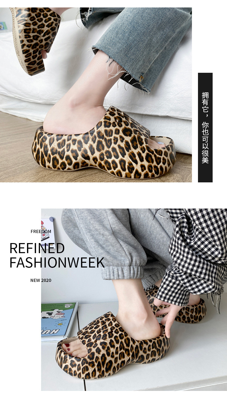 标题:拖鞋女外穿ins潮一字夏网红豹纹欧美时尚EVA厚底踩屎感防滑沙滩鞋