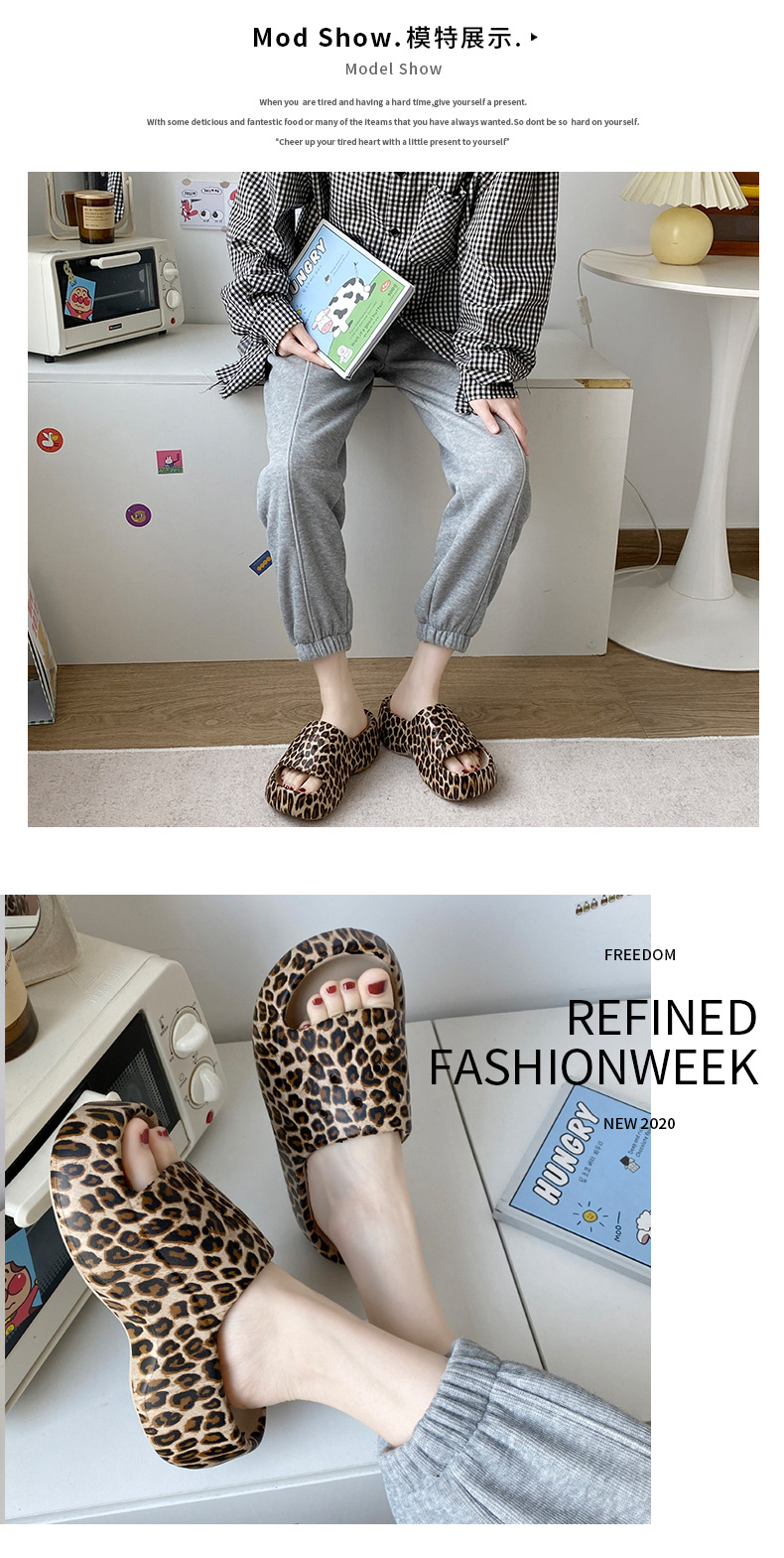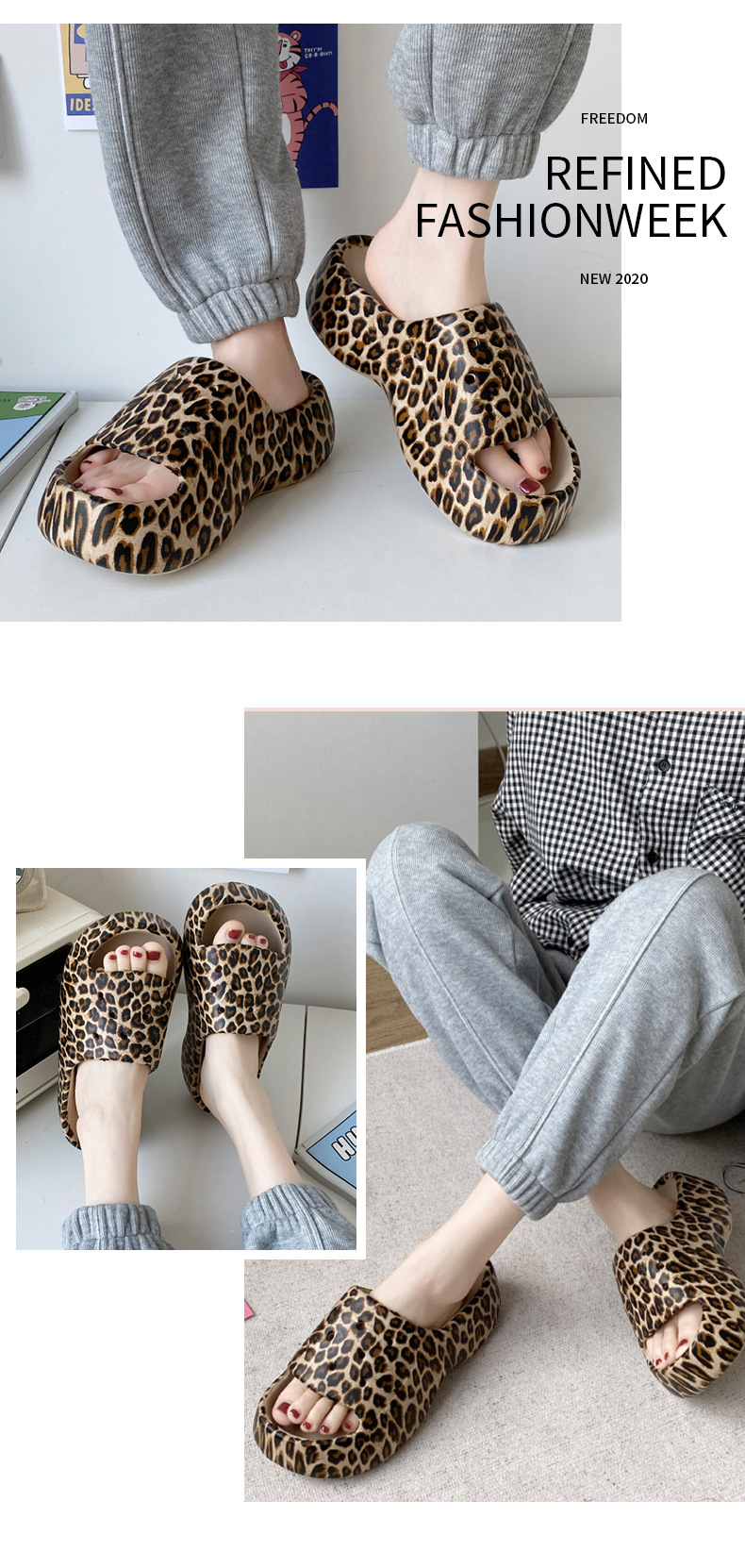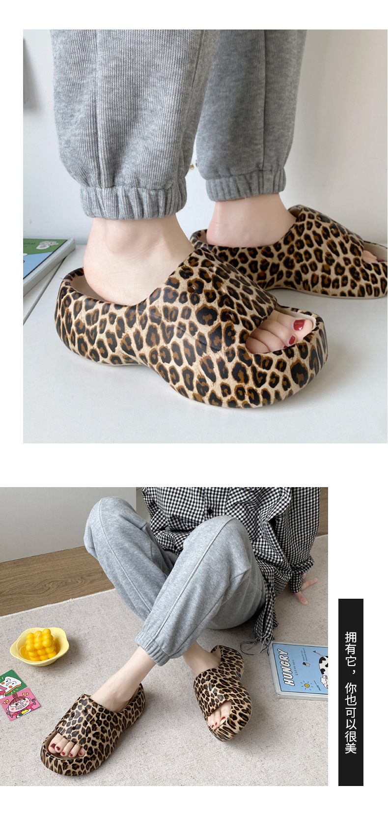 标题:拖鞋女外穿ins潮一字夏网红豹纹欧美时尚EVA厚底踩屎感防滑沙滩鞋