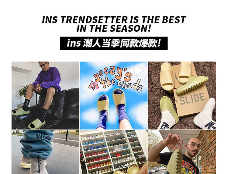 标题:新款情侣二代椰子拖鞋yeezy侃爷同款一字拖slide男女厚底沙滩凉鞋