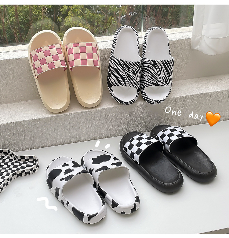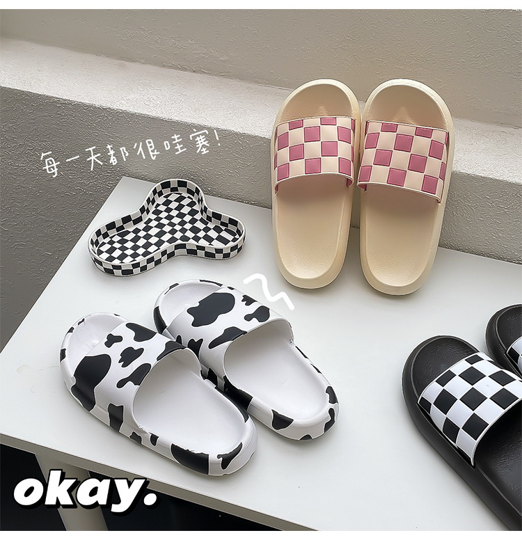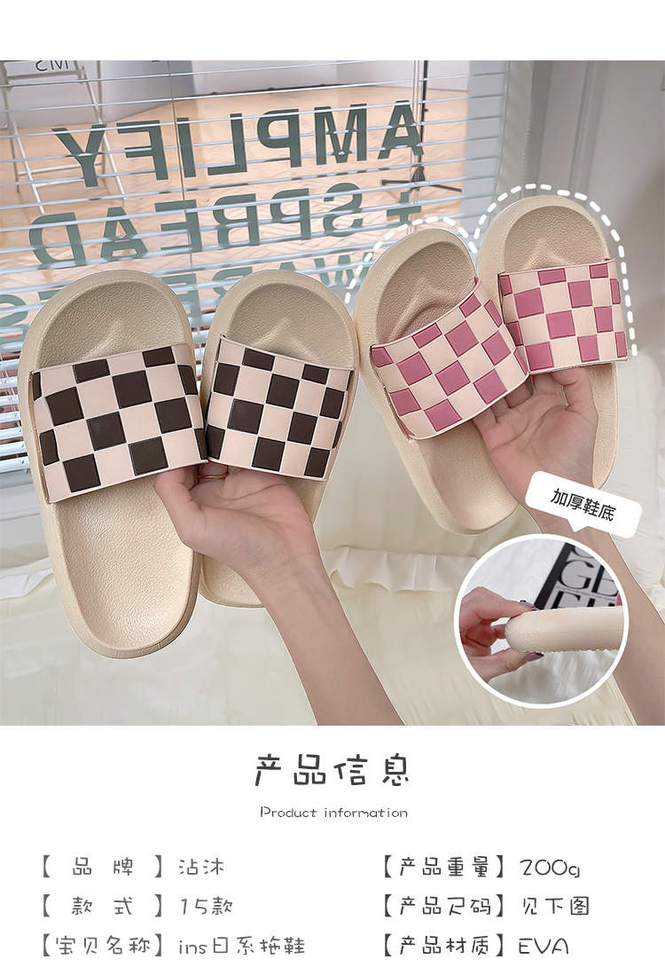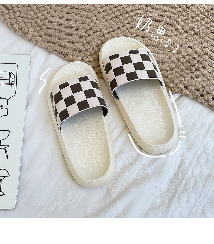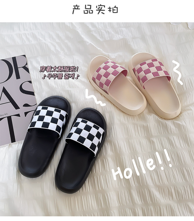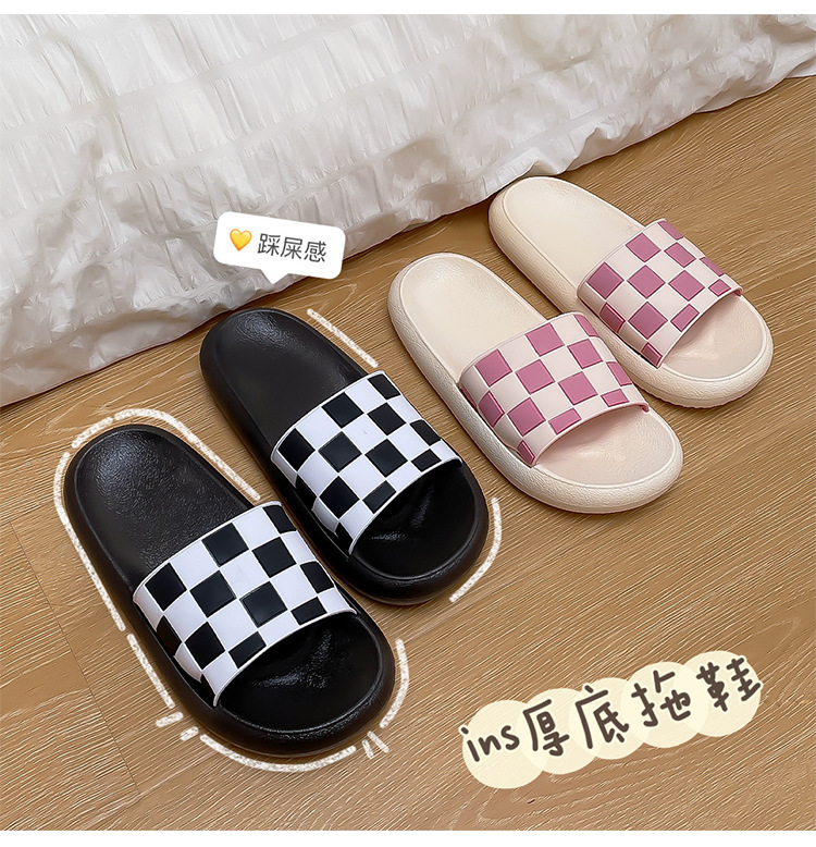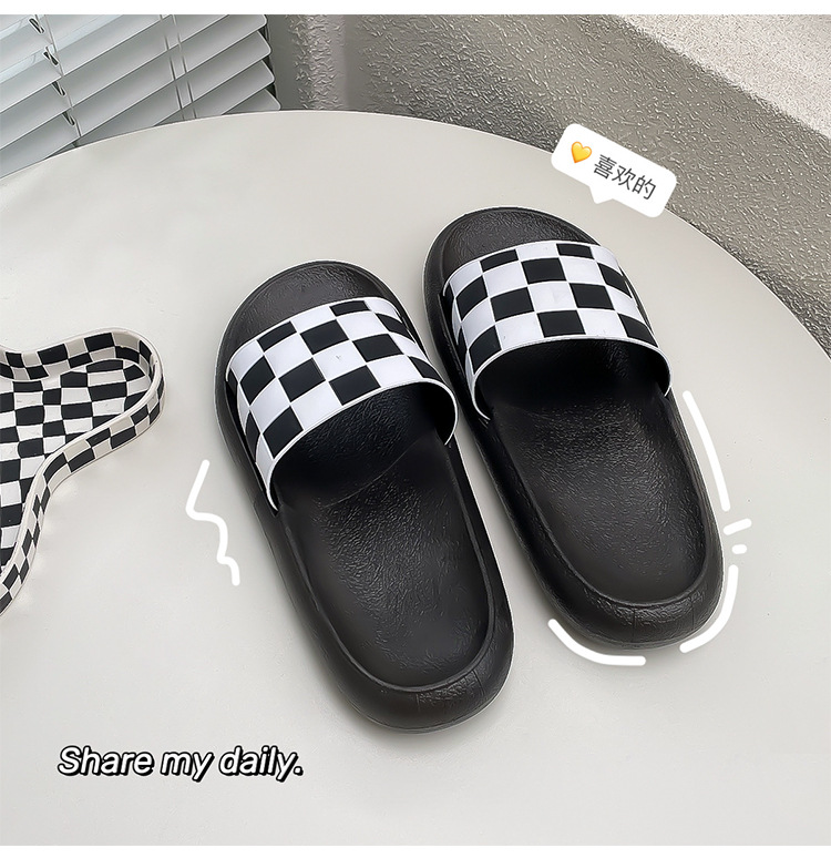 标题:黑白棋盘格拖鞋夏季男女时尚ins踩屎感厚底沙滩凉拖鞋情侣一字拖