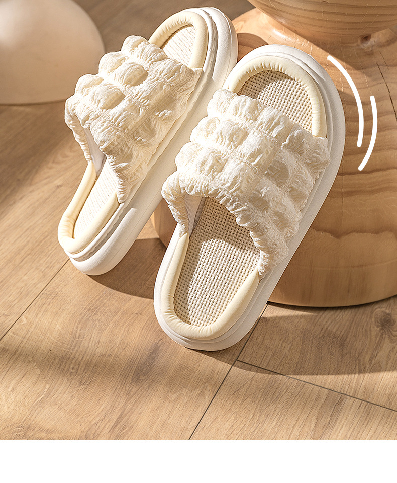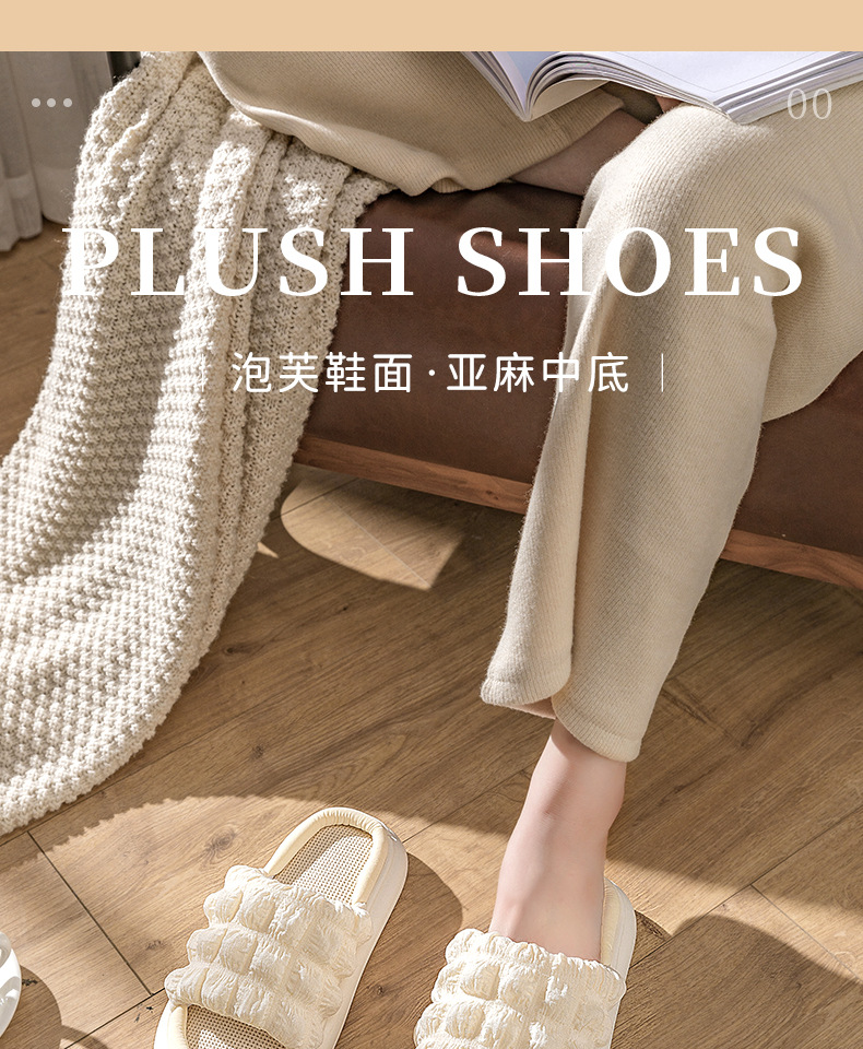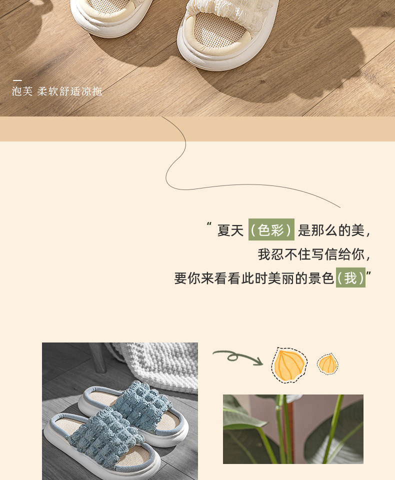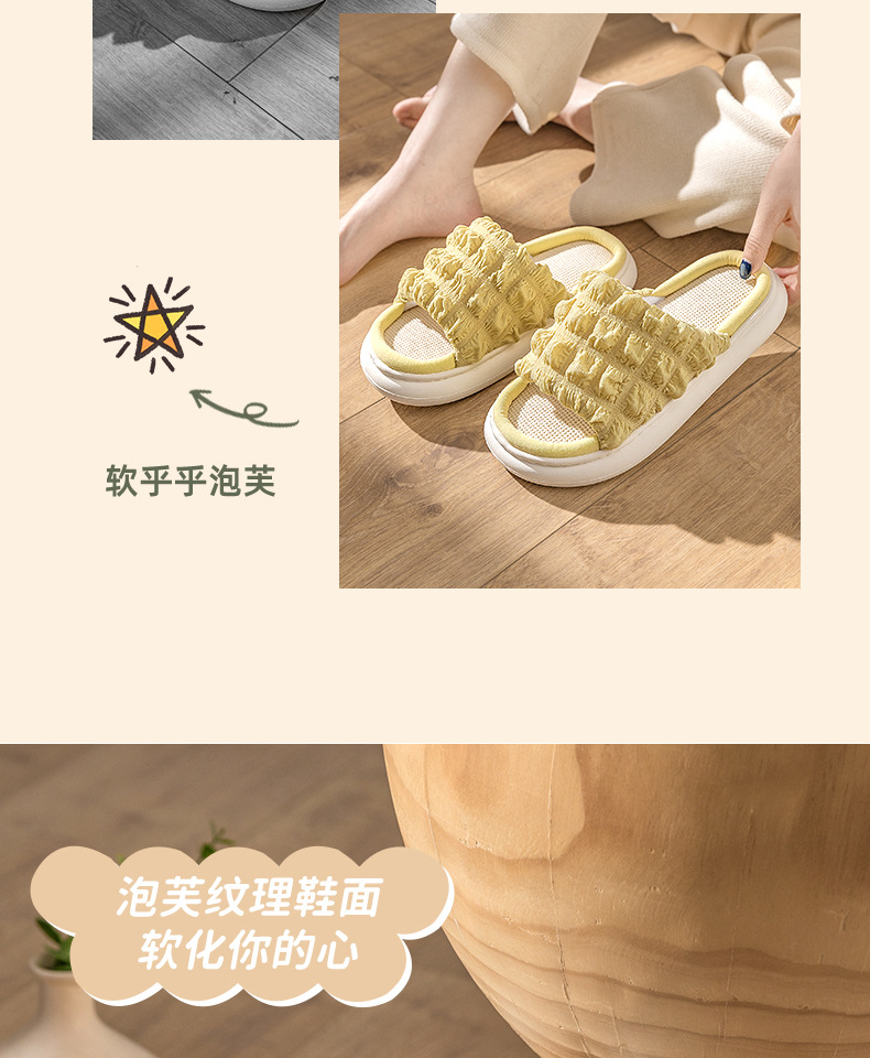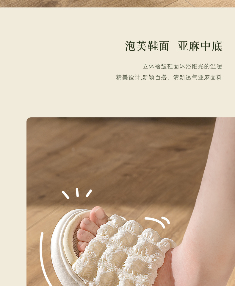 标题:泡芙亚麻拖鞋女四季室内家居家夏外穿踩屎感静音防滑厚底棉麻拖鞋