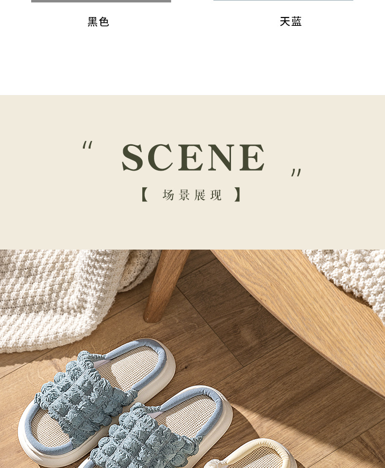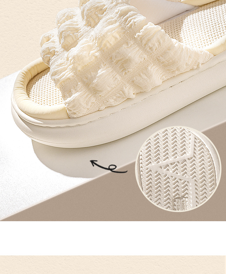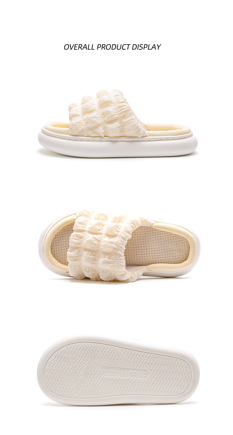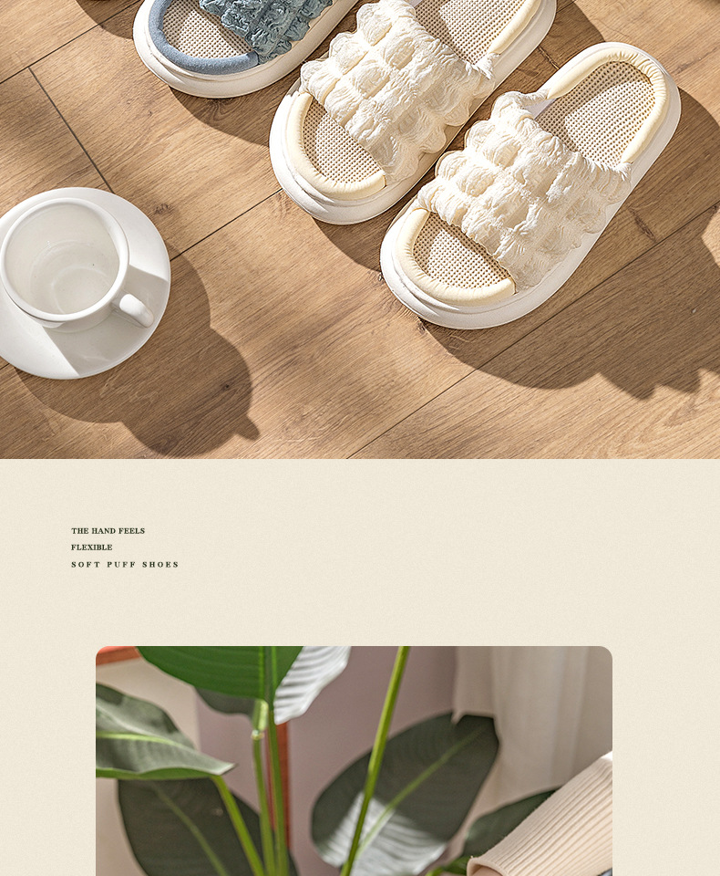 标题:泡芙亚麻拖鞋女四季室内家居家夏外穿踩屎感静音防滑厚底棉麻拖鞋