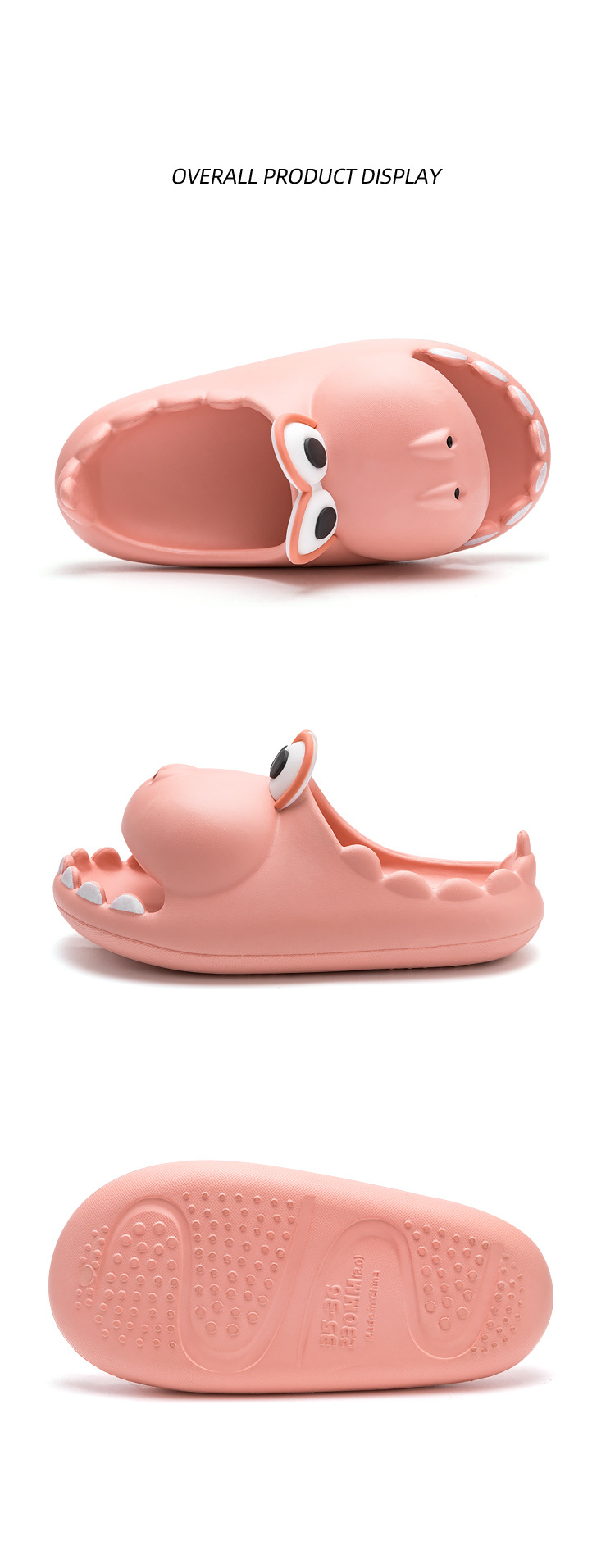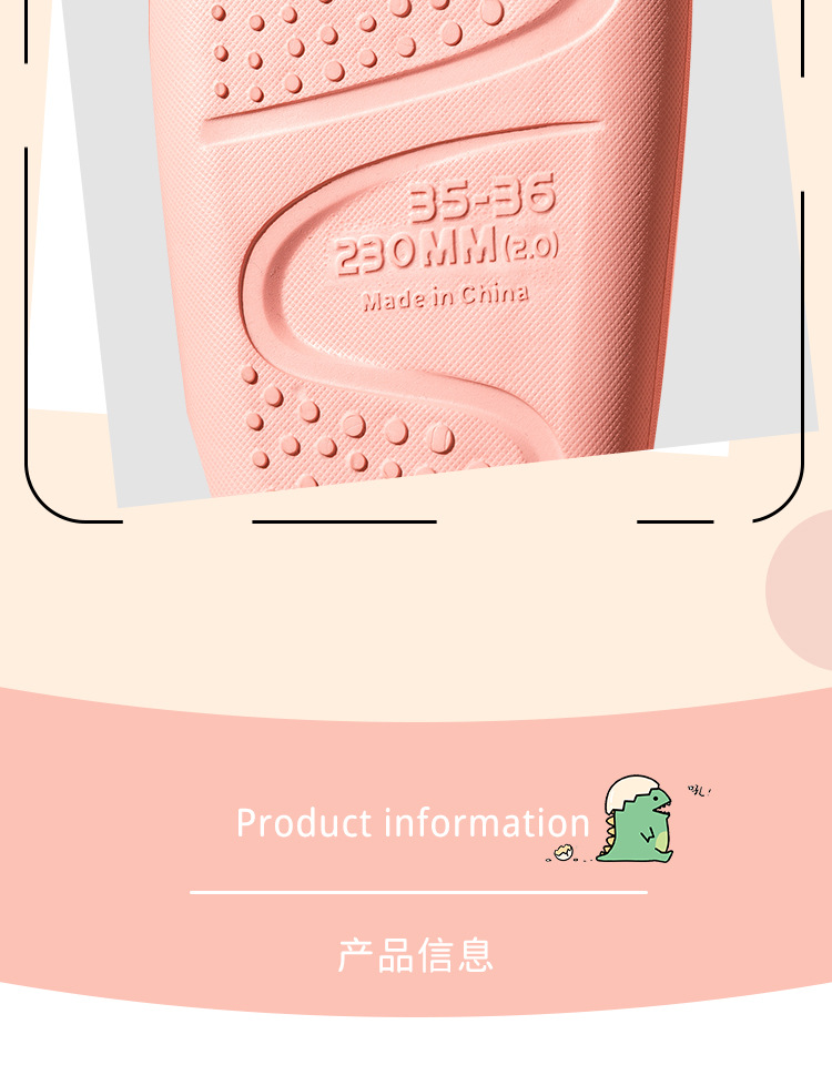 描述:适用性别:中性/男女均可,鞋底材质:EVA,外贸类型:出口,是否外贸:是,功能:透气,除臭,防滑,耐磨,鞋面材质:EVA,流行元素:恐龙,鞋底厚度:1.5cm(含)-3.5cm(不含),是否跨境货源:否,适用人群类型:亲子,款式:一字拖,鞋底工艺:注塑鞋,货源类别:现货,品牌:蒂娅莎,货号:6202,拖鞋种类:一字拖,是否包跟:否,厚薄:加厚,是否带USB:否,最快出货时间:1-3天,系列:卡通,上市年份季节(上市时间):2022年夏季,最晚发货时间:3天,颜色:黄色,粉色,绿色.,浅蓝,灰色.,尺码:35-36,37-38,39-40,40-41,42-43,44-45,170,180,190,200,210,220,主要下游平台:ebay,亚马逊,wish,速卖通,独立站,LAZADA,主要销售地区:非洲,欧洲,南美,东南亚,北美,东北亚,中东,