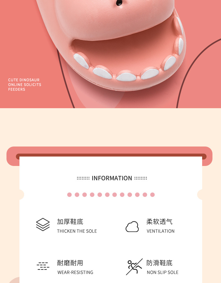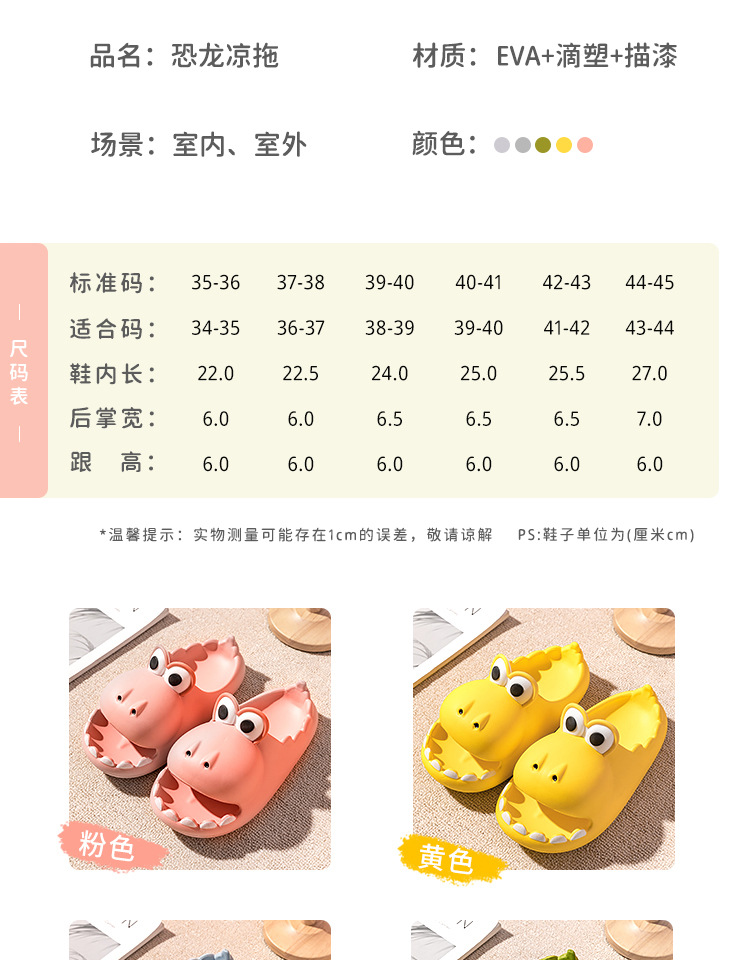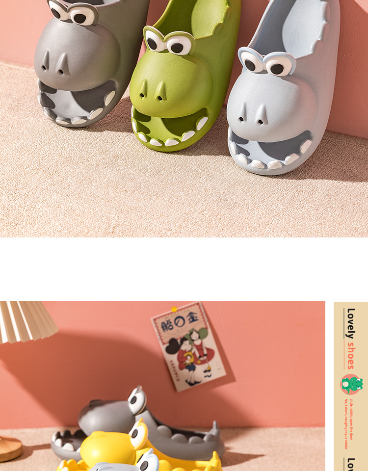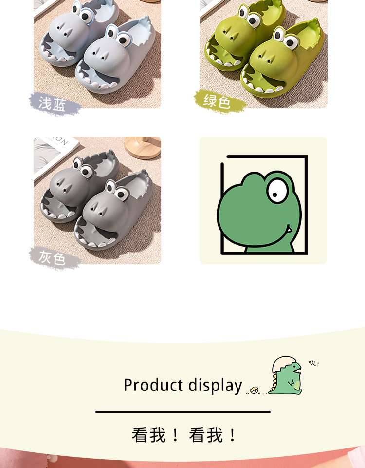 标题:可爱小恐龙亲子款夏季凉拖鞋成人男女款居家室外防滑耐磨踩屎感鞋