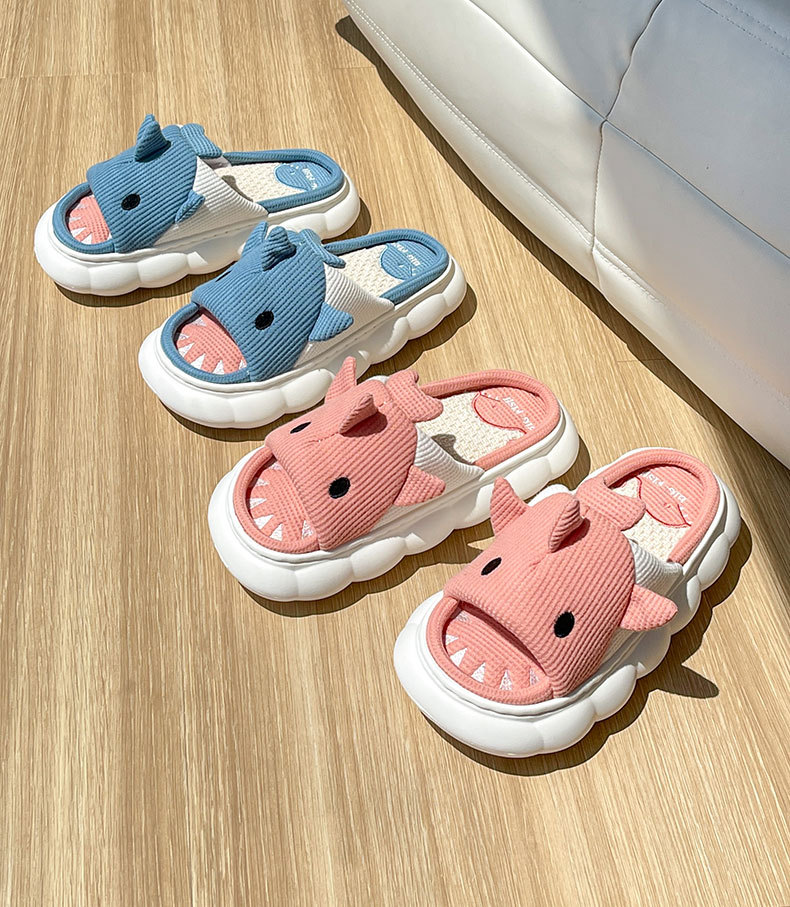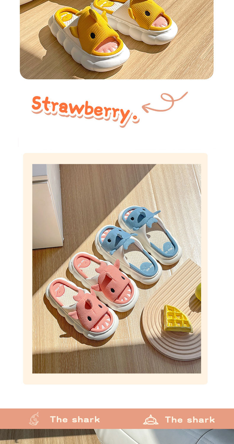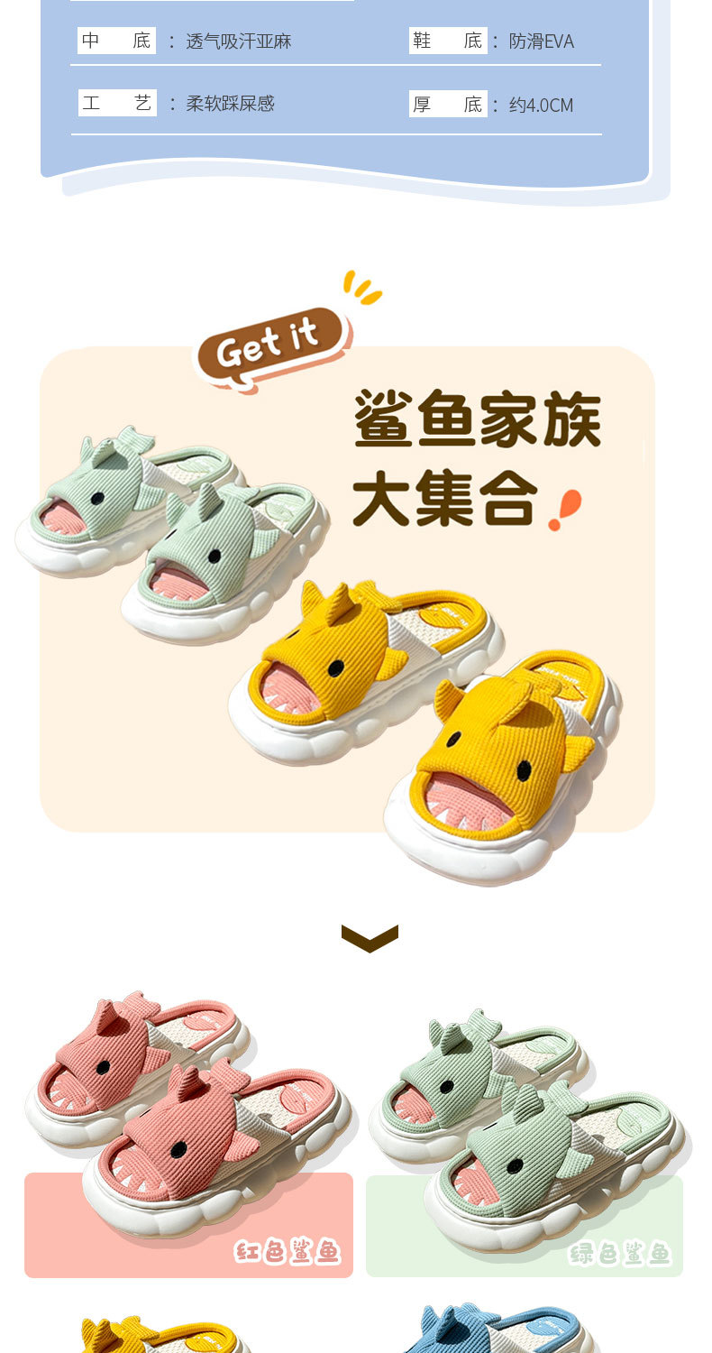 标题:抖音热卖小鲨鱼亚麻拖鞋女春秋季室内居家用厚底防滑吸汗地板拖鞋