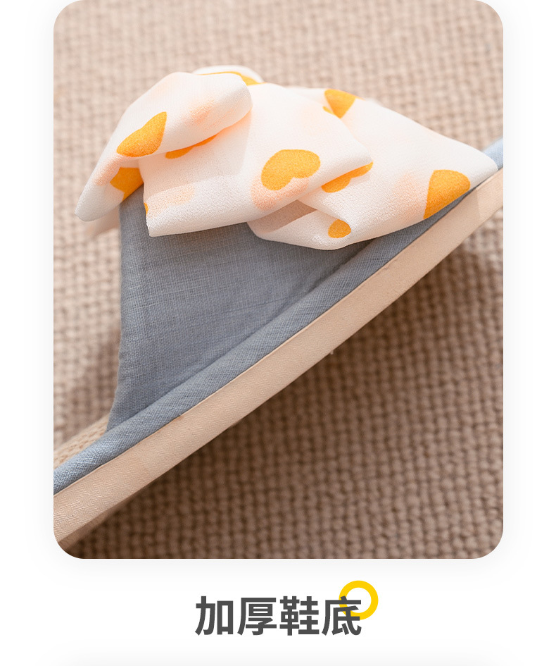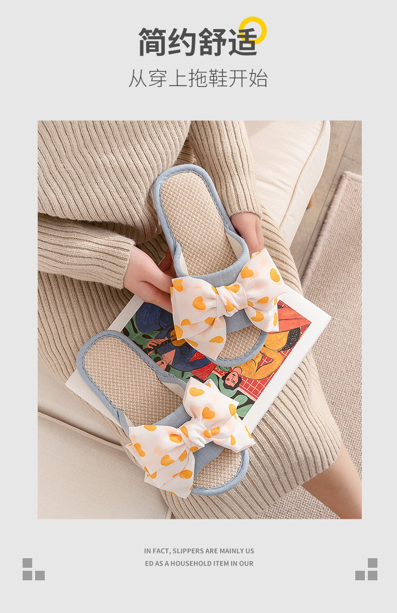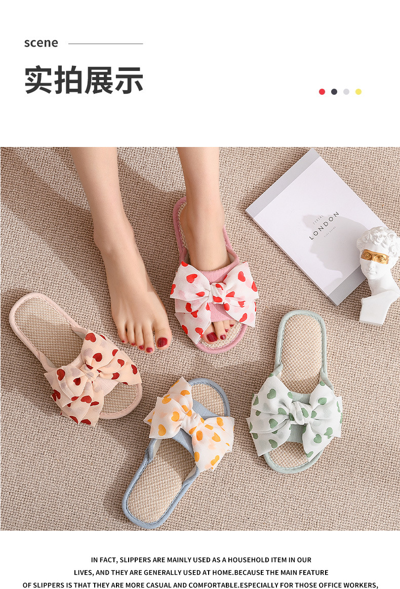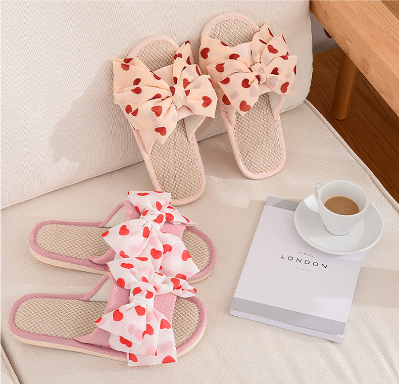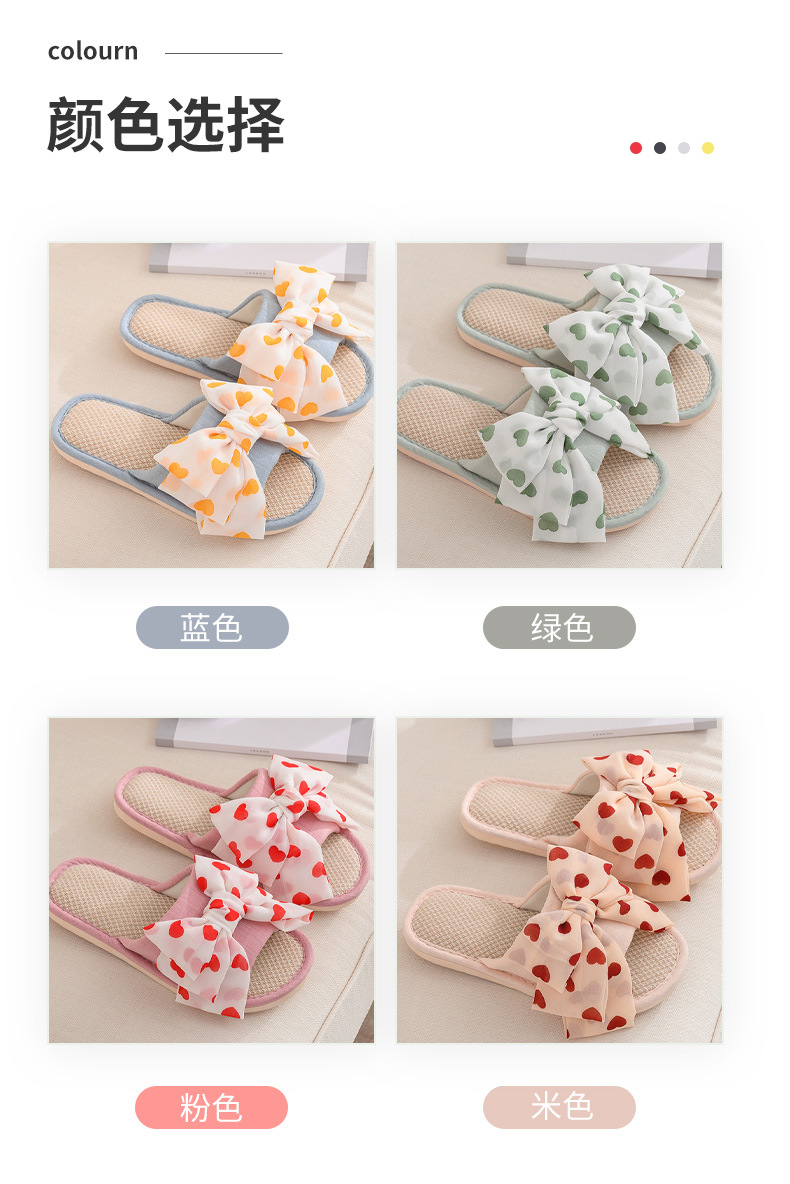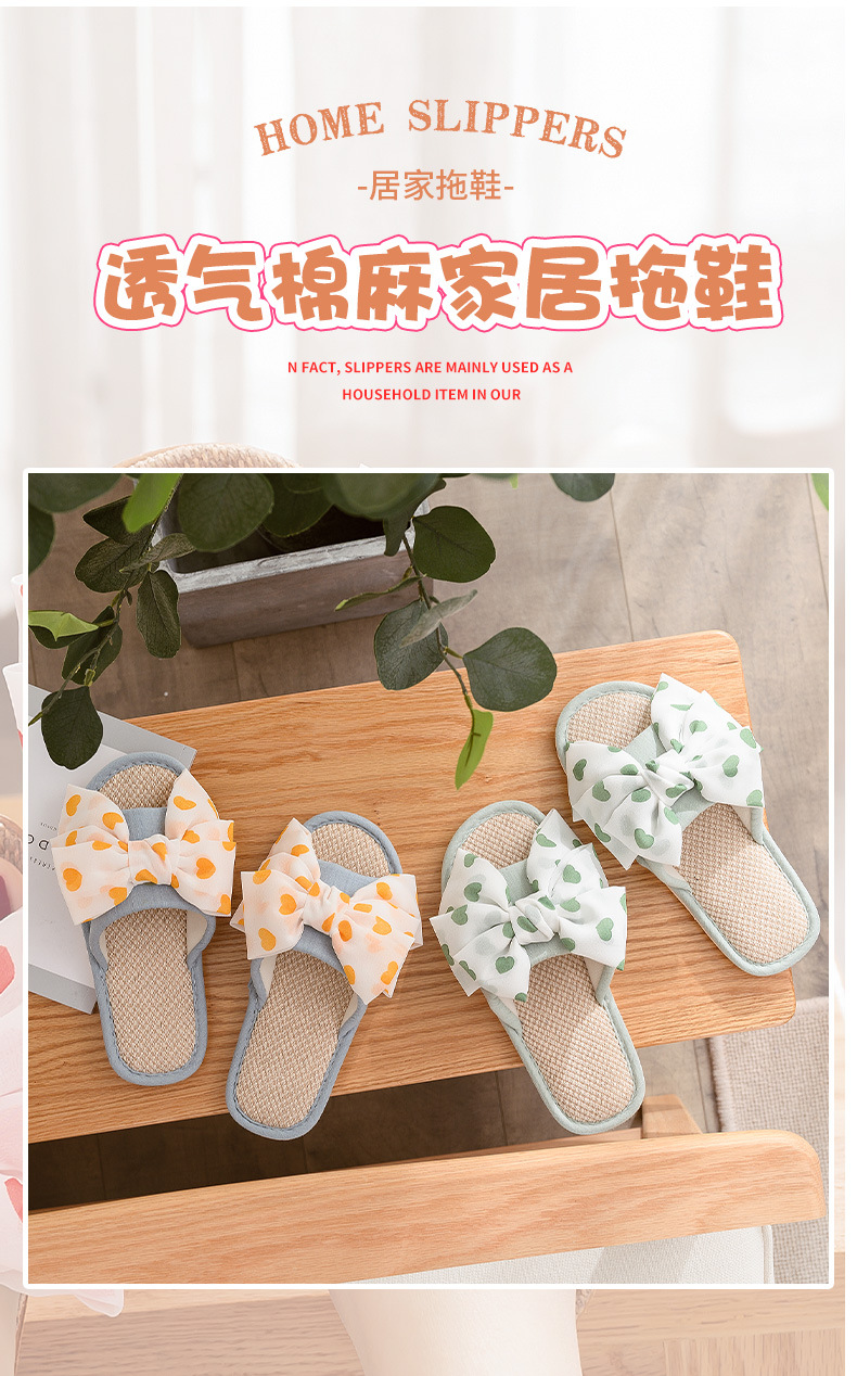 标题:新款居家亚麻拖鞋透气凉拖鞋女夏室内布艺拖鞋爱心蝴蝶结舒适拖鞋