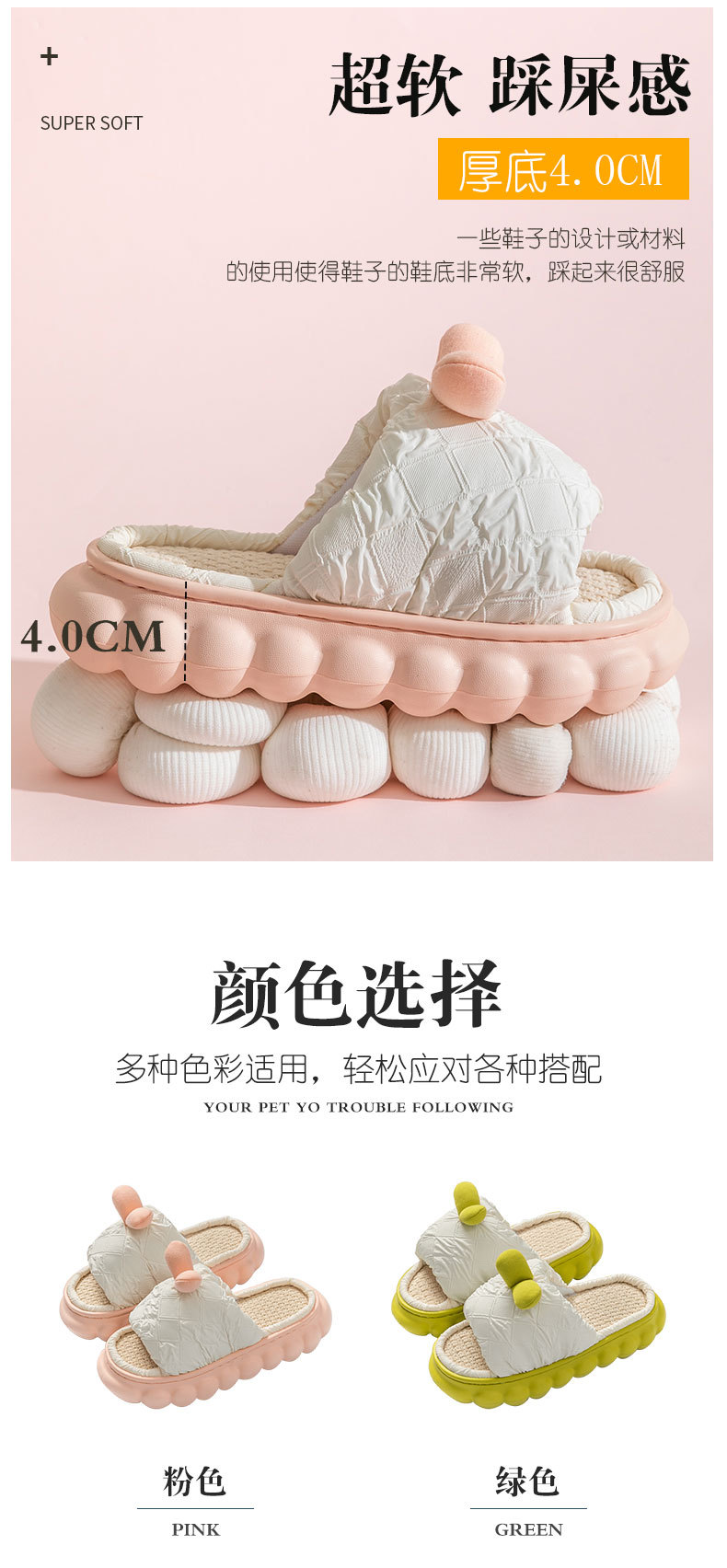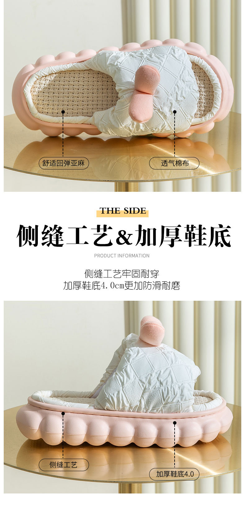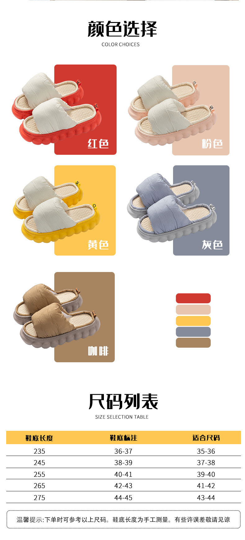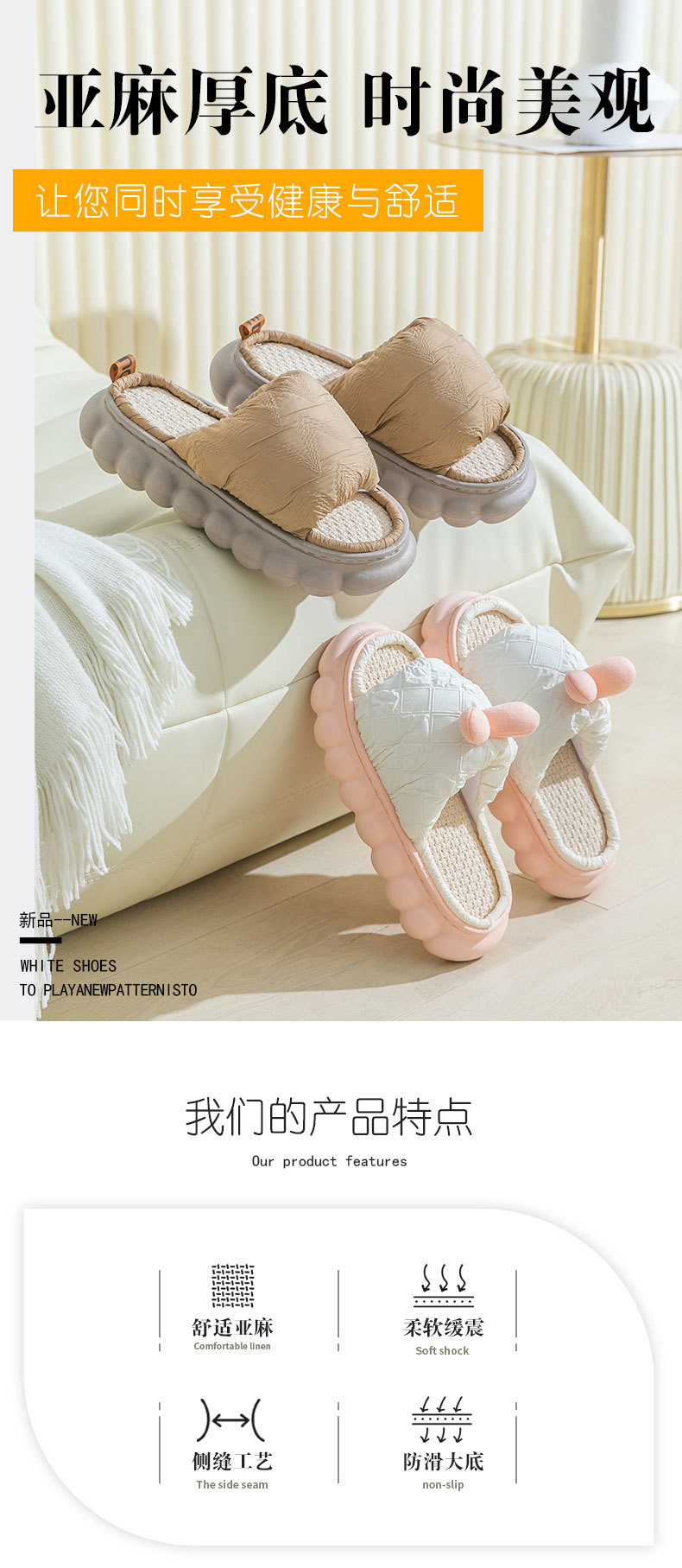 标题:小红书推荐踩屎感厚底亚麻拖鞋女夏防滑静音家用高档亚麻拖鞋夏