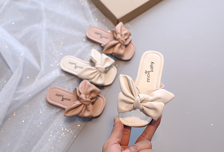标题:女童公主拖鞋2022夏季新款小女孩时尚蝴蝶结一字拖儿童软底防滑拖