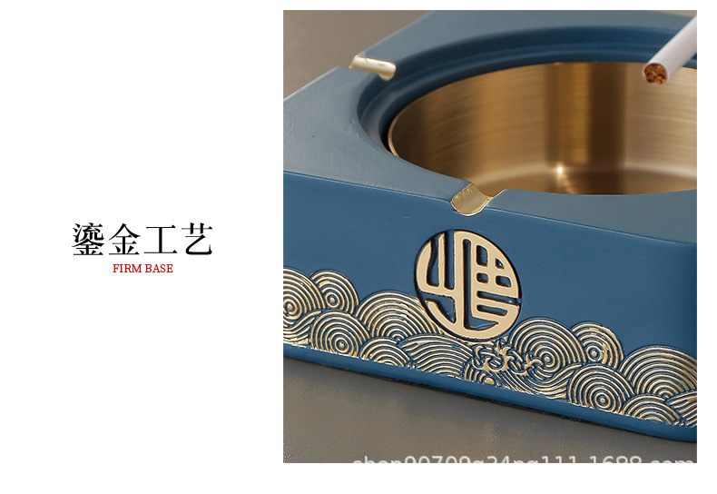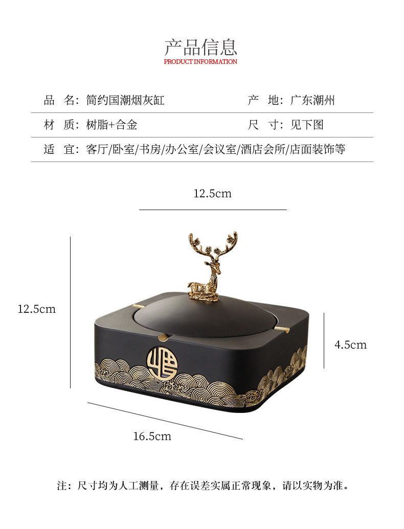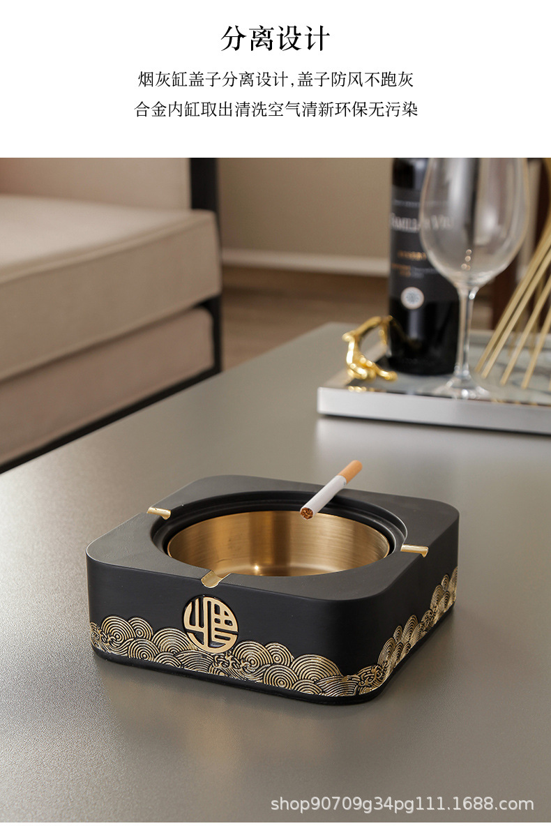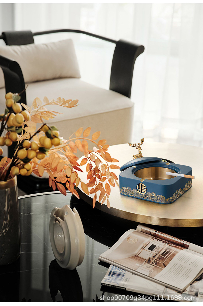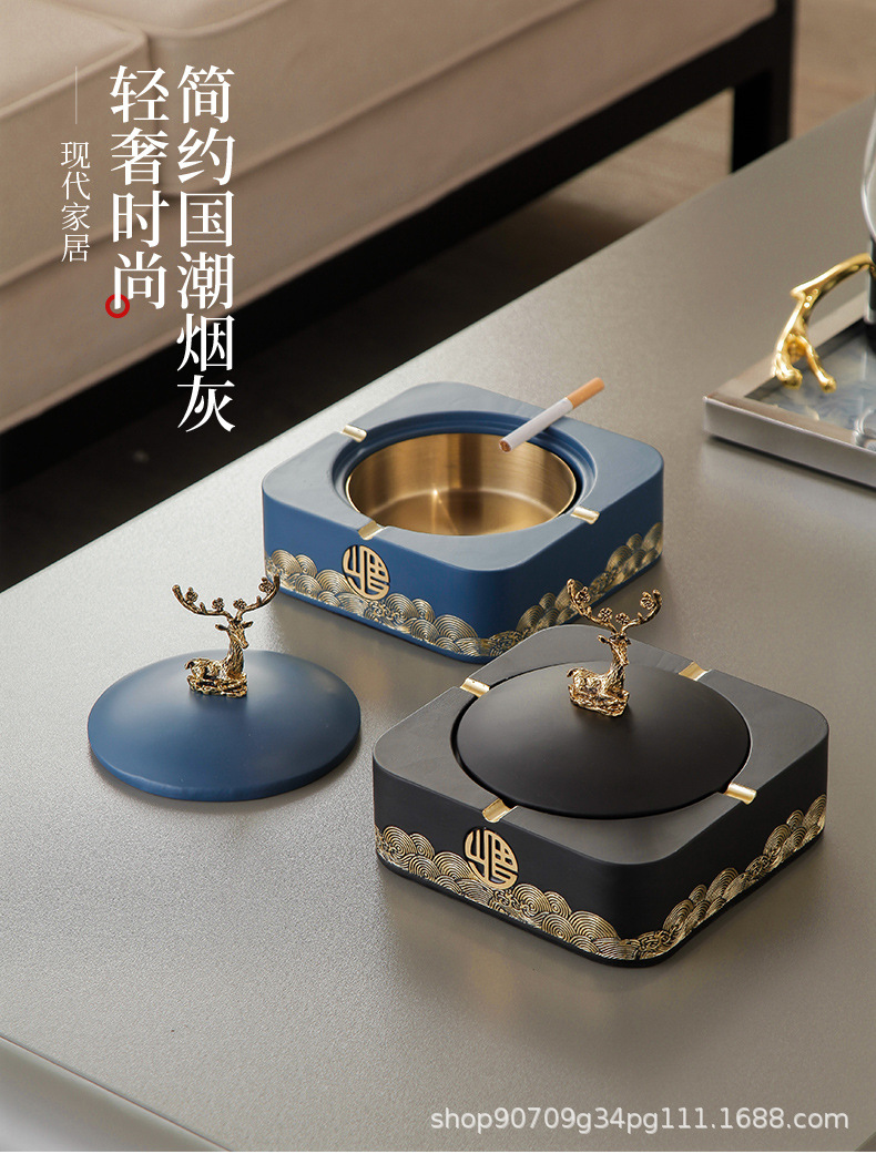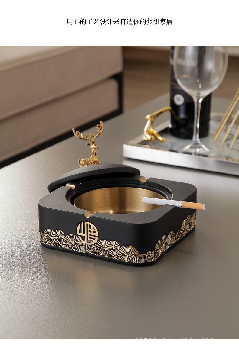 标题:新中式带盖烟灰缸家用客厅潮流创意摆件高档茶几大号烟缸桌面套装