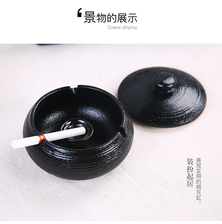 标题:跨境陶瓷烟灰缸家用客厅摆件创意带盖中式复古窑变厂家批发
