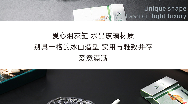 标题:创意冰雪火山时尚水晶玻璃烟灰缸爱心礼品磨砂收纳碟客厅个性烟蝶