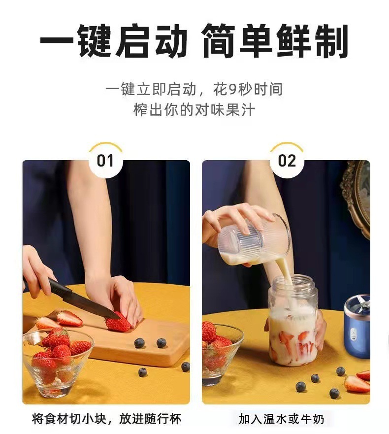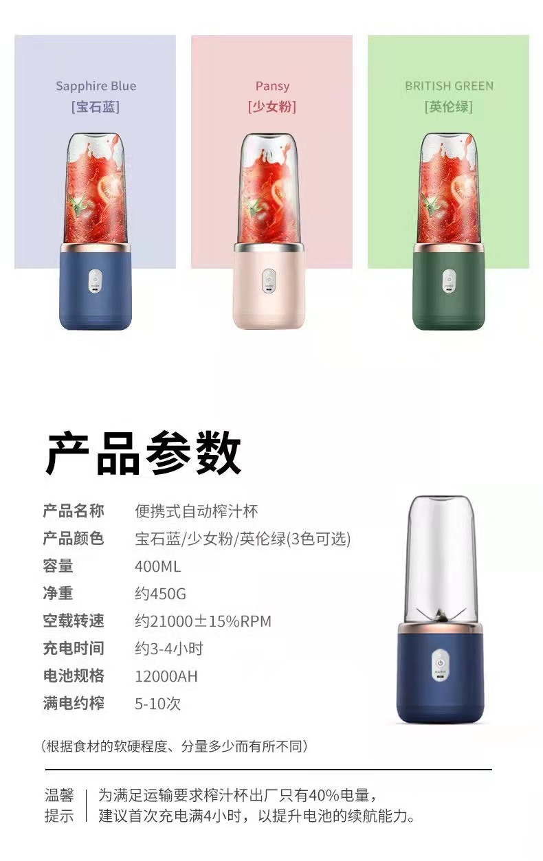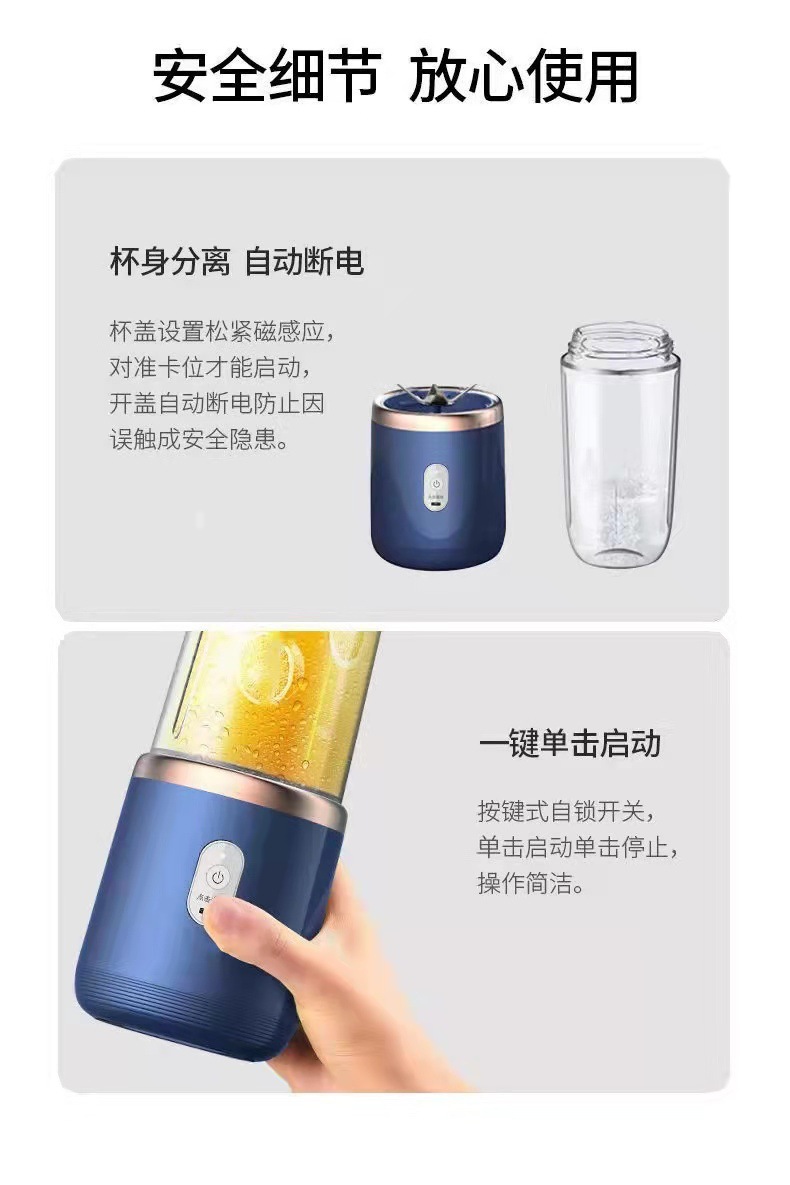 标题:跨境榨汁机 携带式充电小型家用果汁 杯热销款全自动多功能榨汁杯