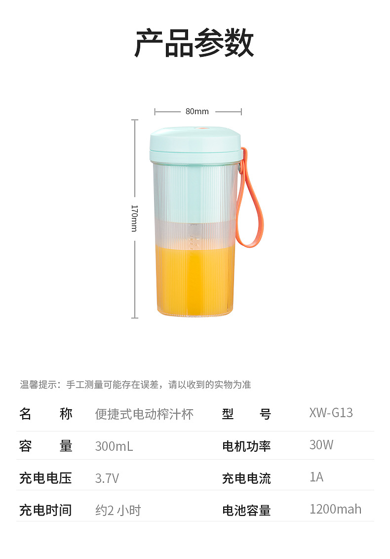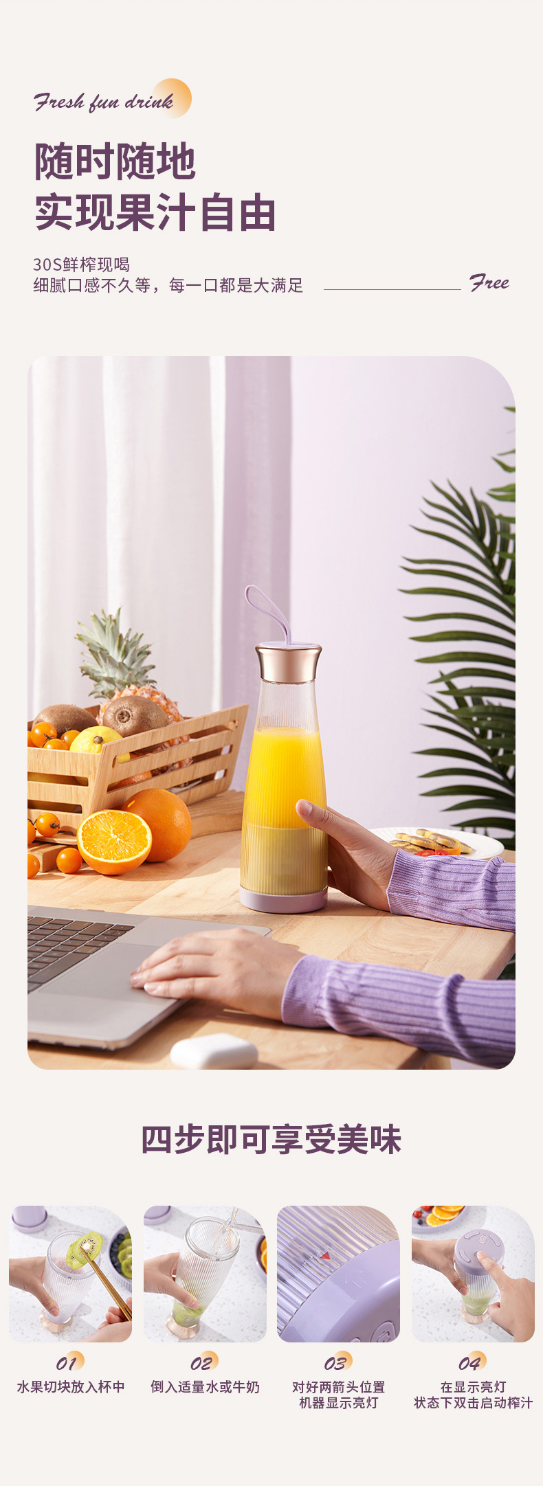 标题:迷你果汁机小型多功能电动复古水果榨汁杯大容量便携式榨汁机批发