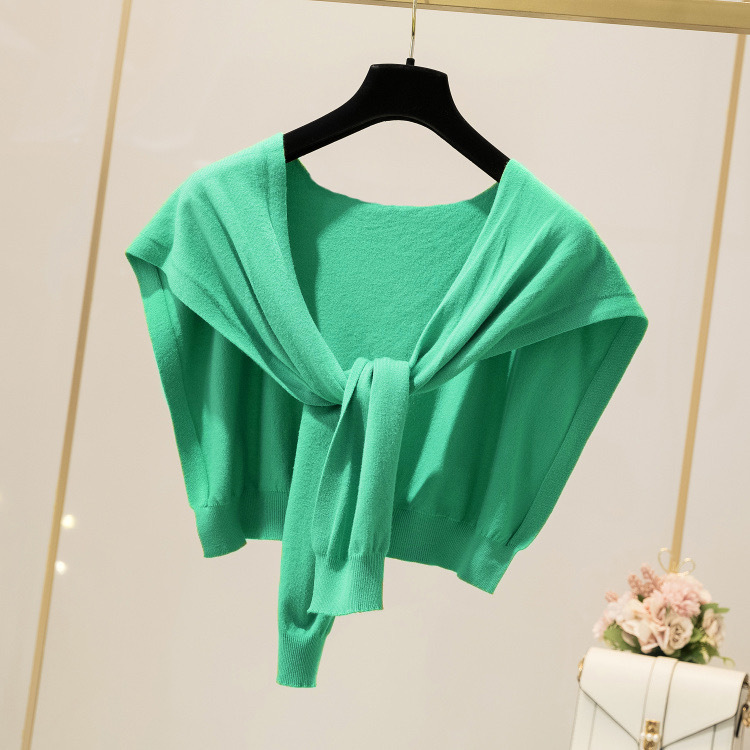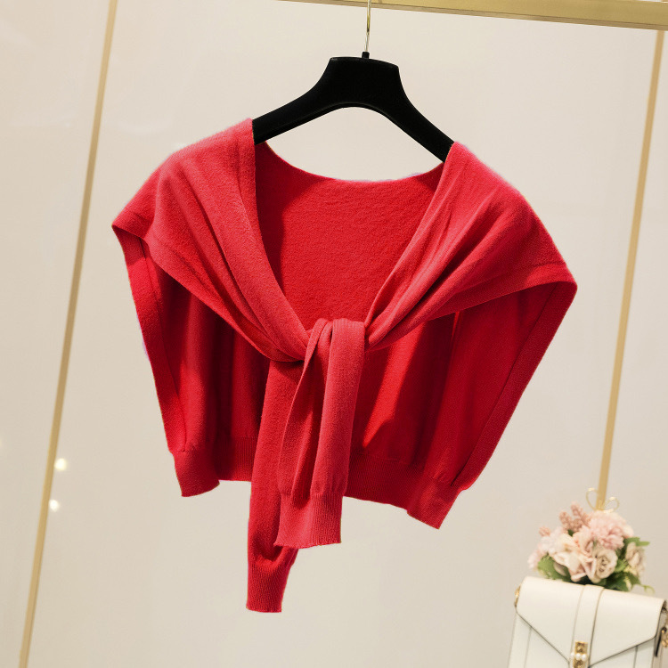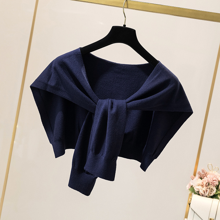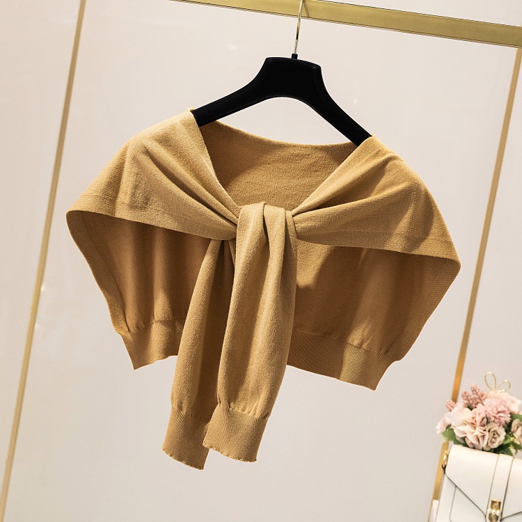 标题:斗篷针织披肩女短款2021秋冬百搭系带打结搭肩护颈围巾两用假领子