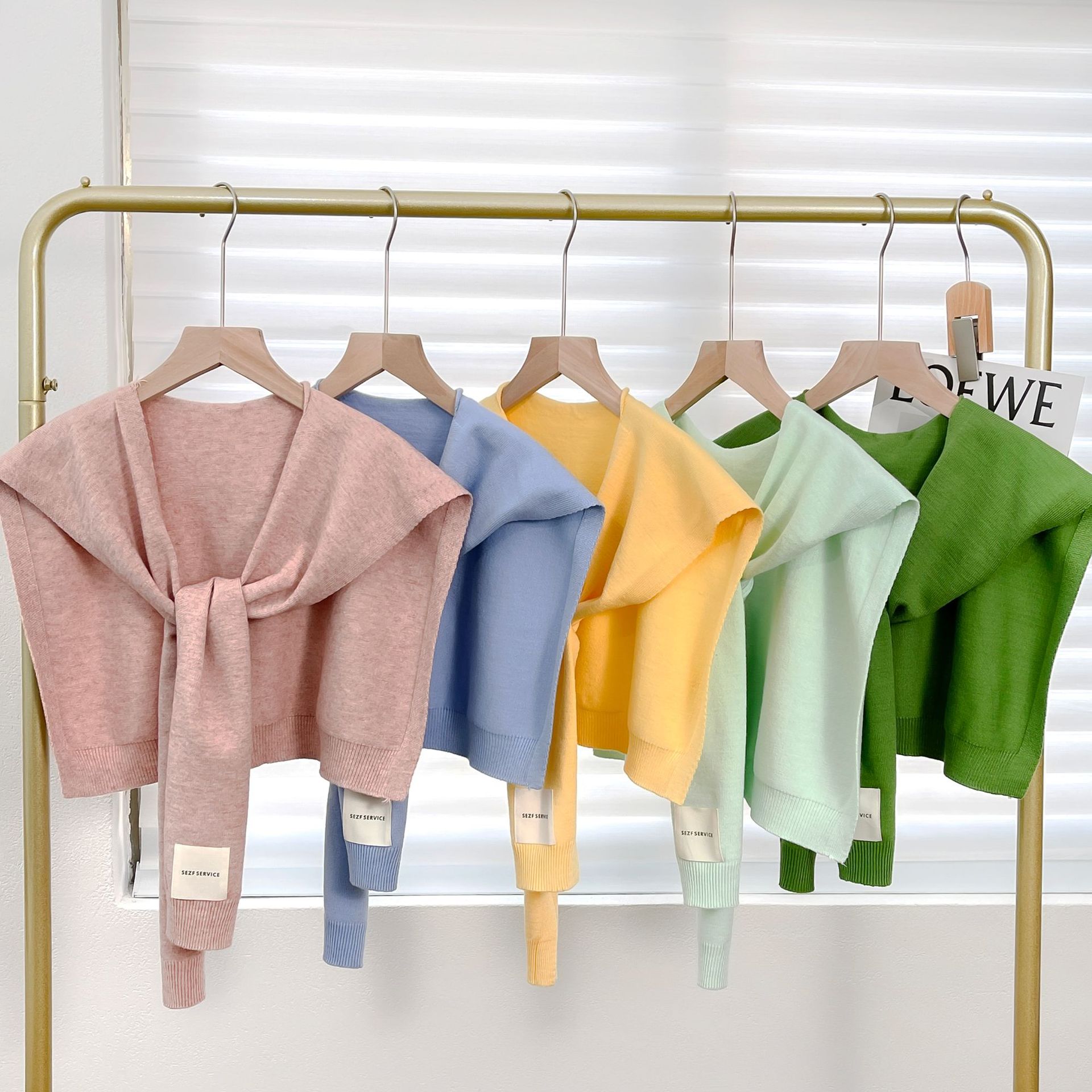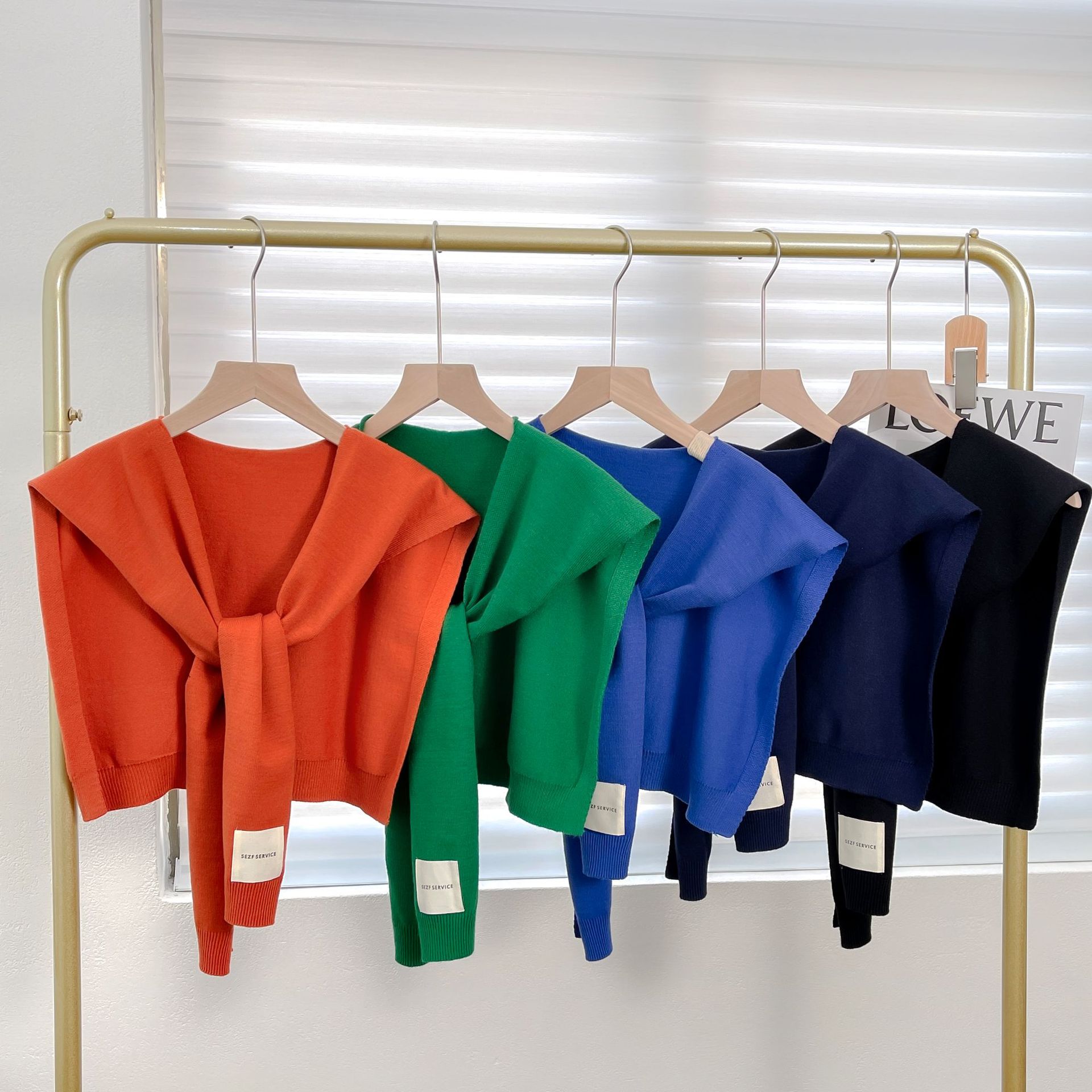 标题:春秋韩版针织毛线搭肩假领外搭女打结纯色小披肩护颈围脖装饰批发
