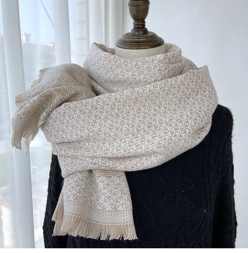 标题:韩版复古文艺针织围巾女秋冬新款仿羊绒保暖百搭披肩两用围脖批发
