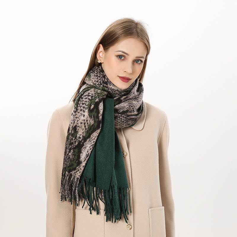 标题:秋冬新款蛇纹围巾女中长保暖欧美时尚个性加厚披肩围脖仿羊绒围巾