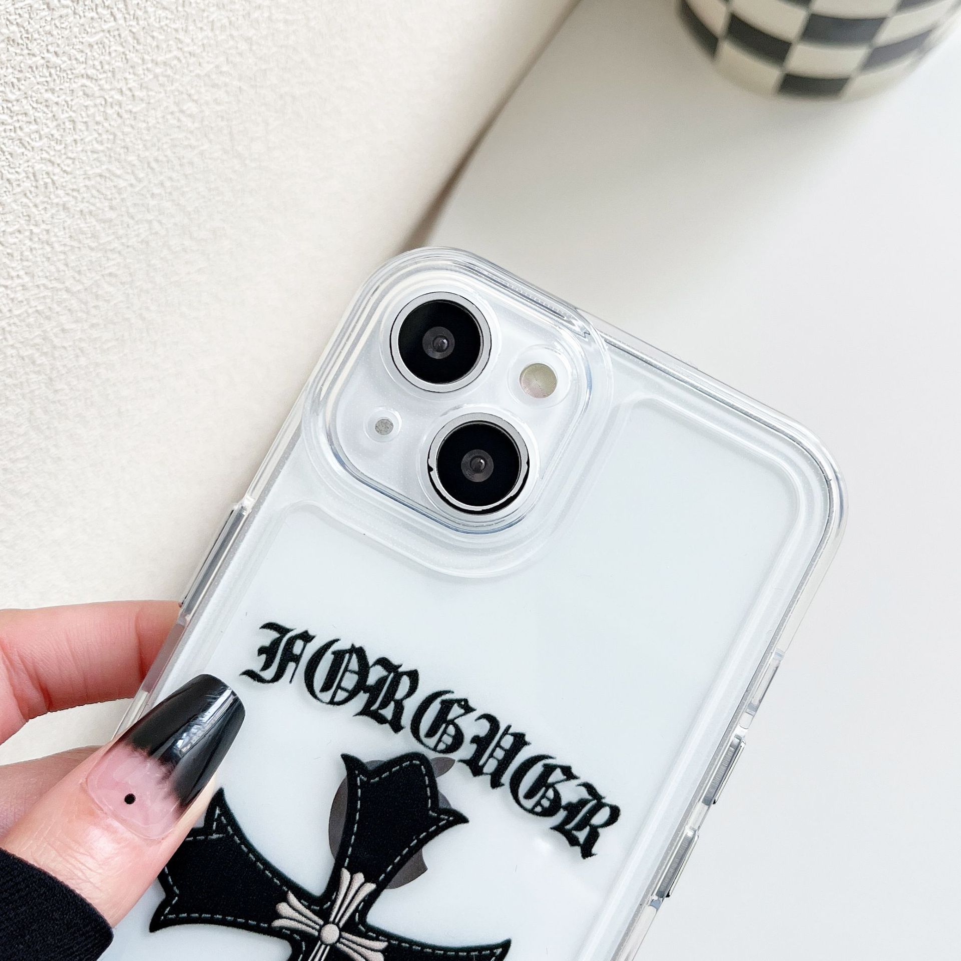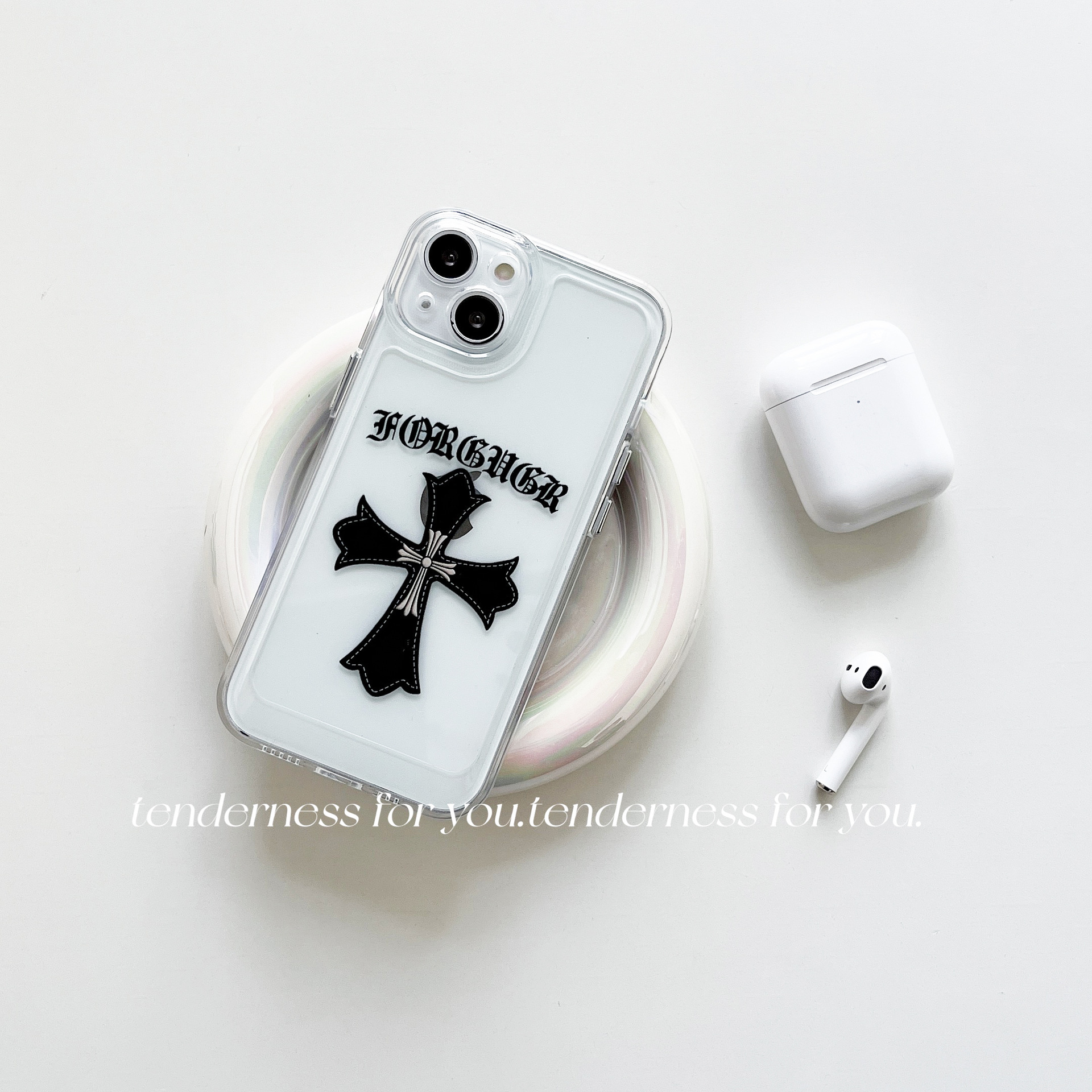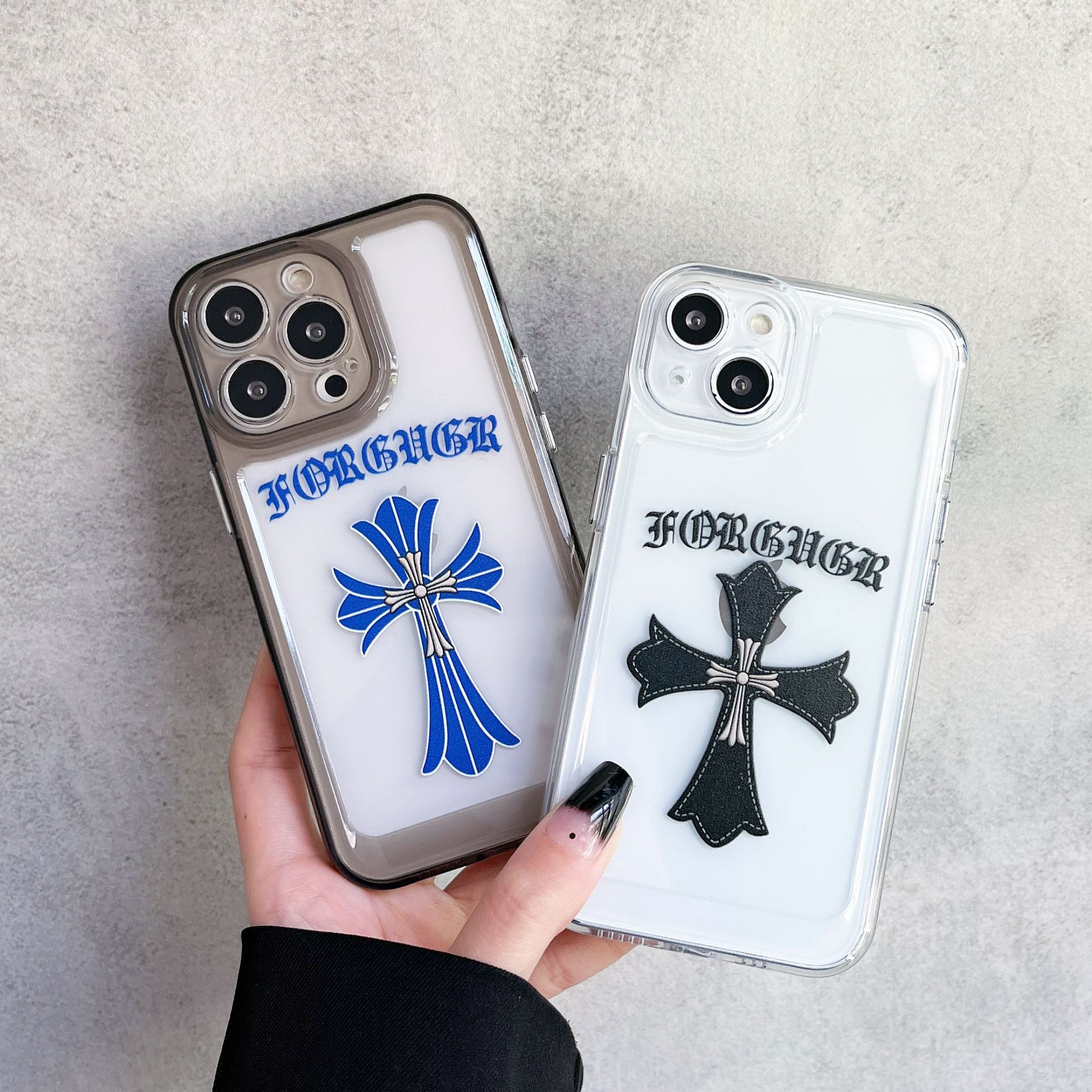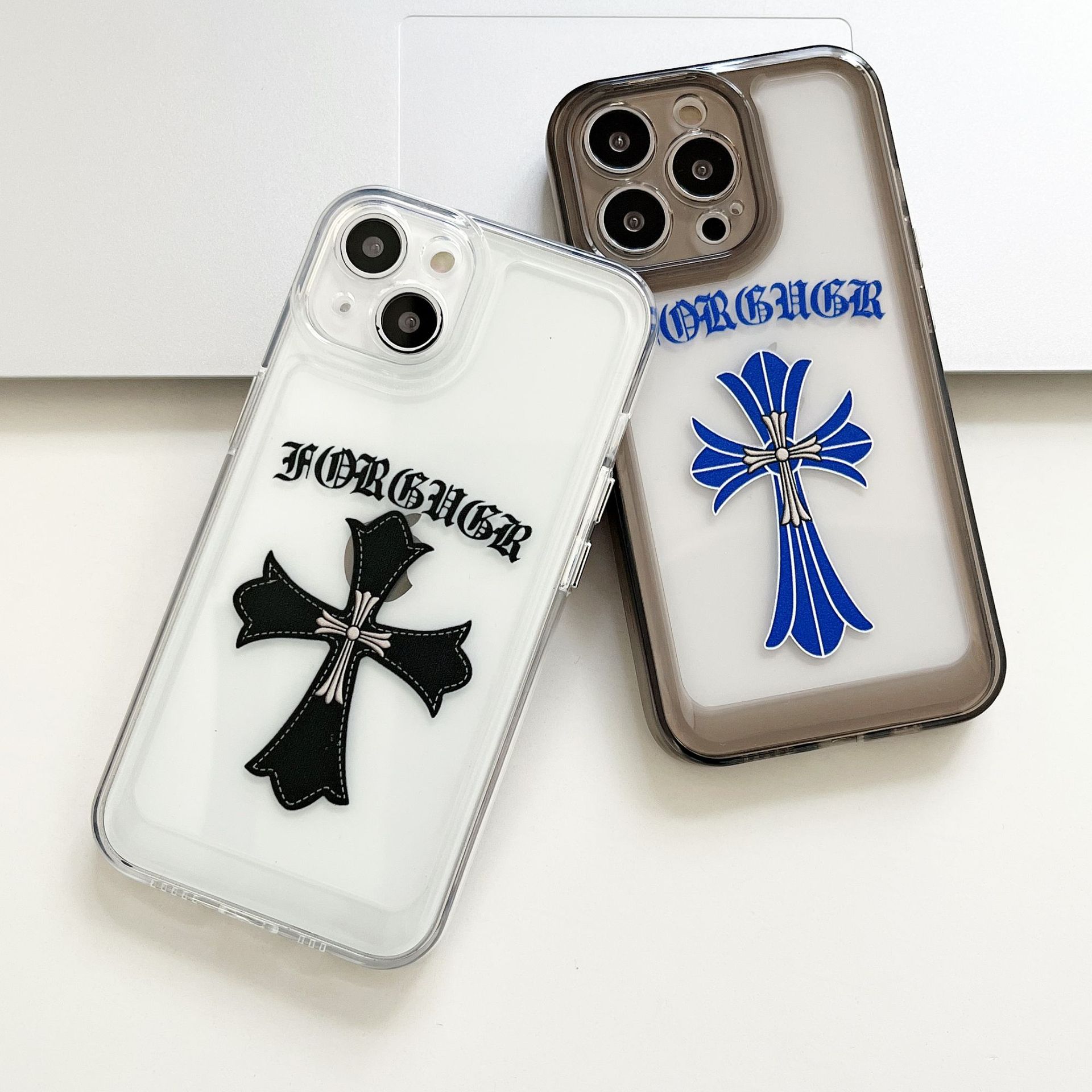 标题:潮牌クローン心クロス適用iPhone13promax携帯ケースアップル11透明12個性カップル