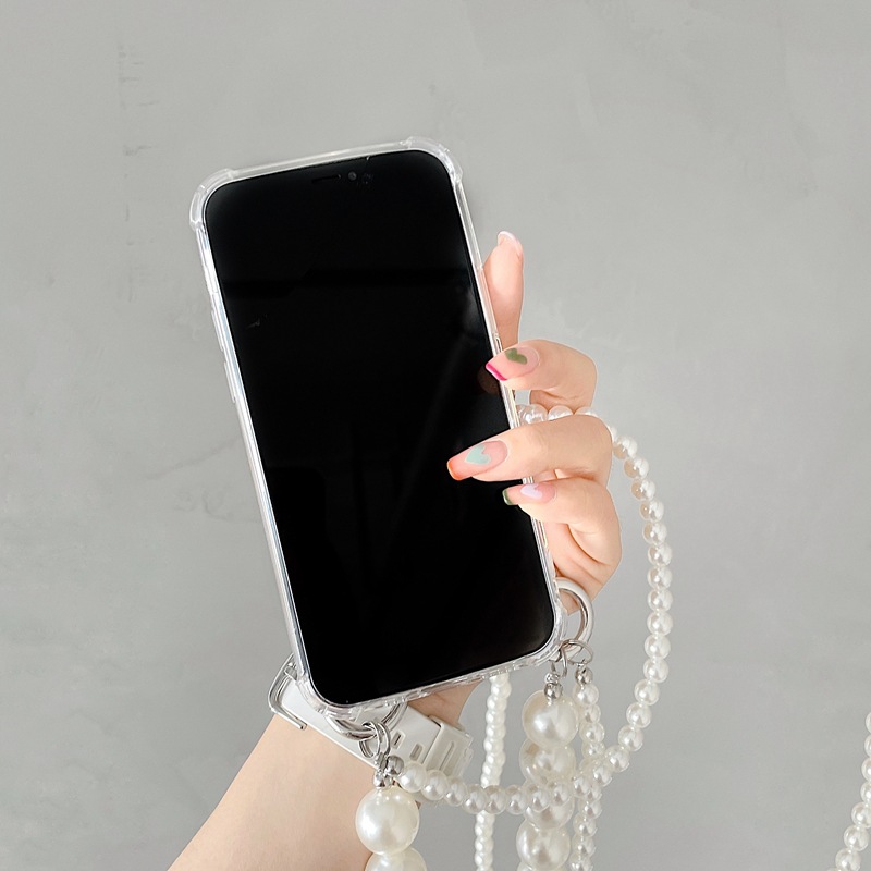 标题:韓国の大真珠手提げ斜スパン二重チェーン適用リンゴ12promax転倒防止iphone11携帯ケース8X