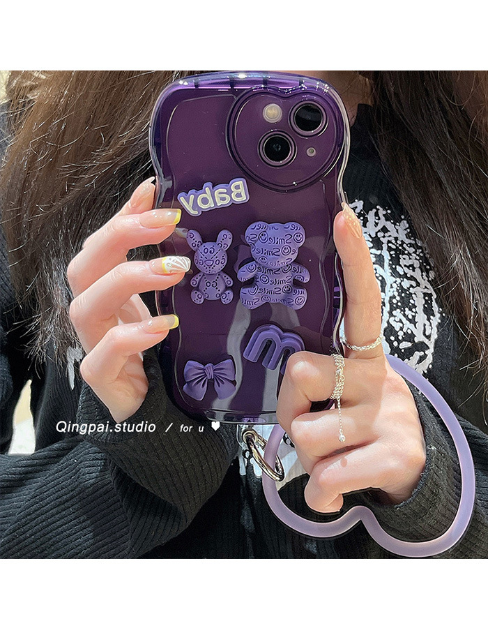 标题:紫色のベアーの手環はiphone13promaxリンゴ12pro携帯ケース11新型xr女潮13を適用している
