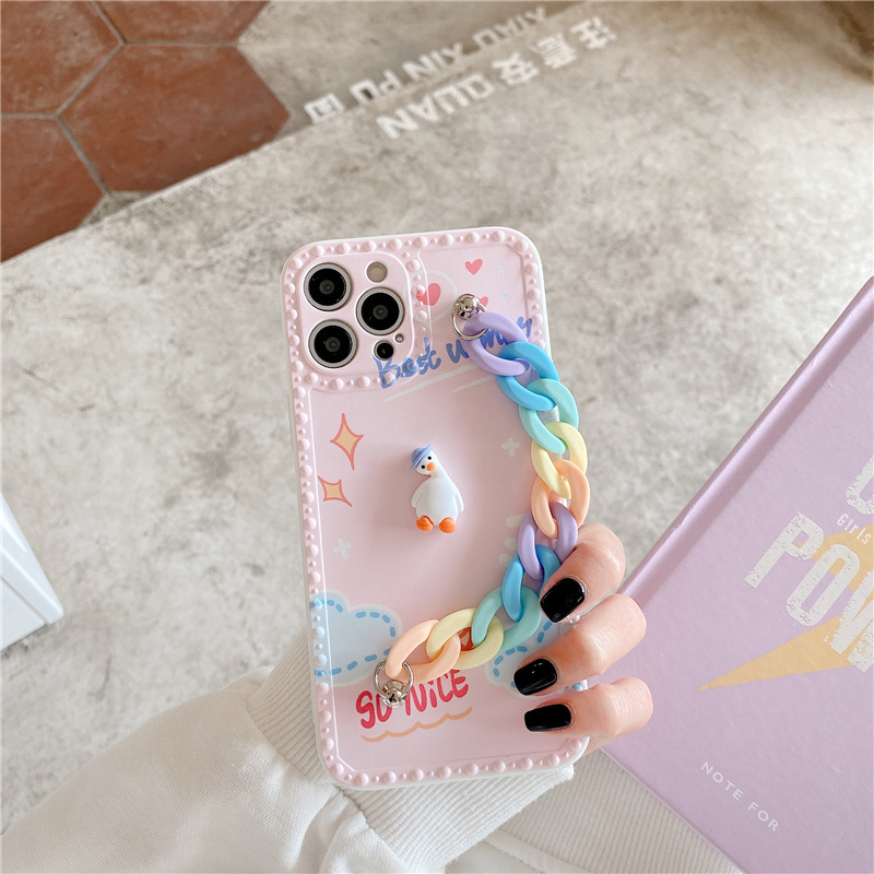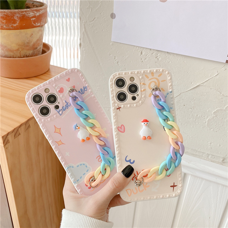 标题:スターの同じタイプのアヒル手链条適用iphone13Promax携帯ケースアップル11/12軟xr/xs女