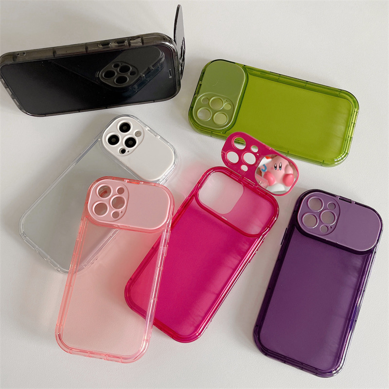 标题:折り畳みカバー鏡スタンドはiphone13Promax携帯ケース11リンゴ12純色xr男女ソフトに適用される