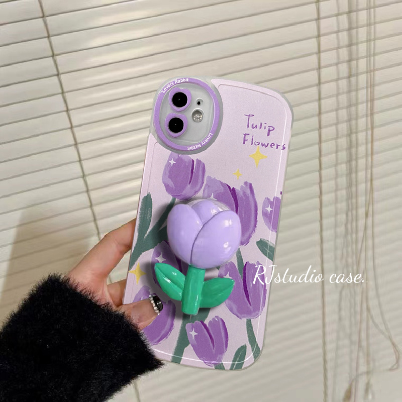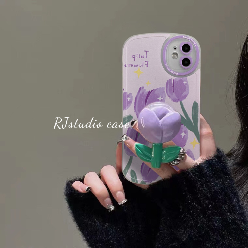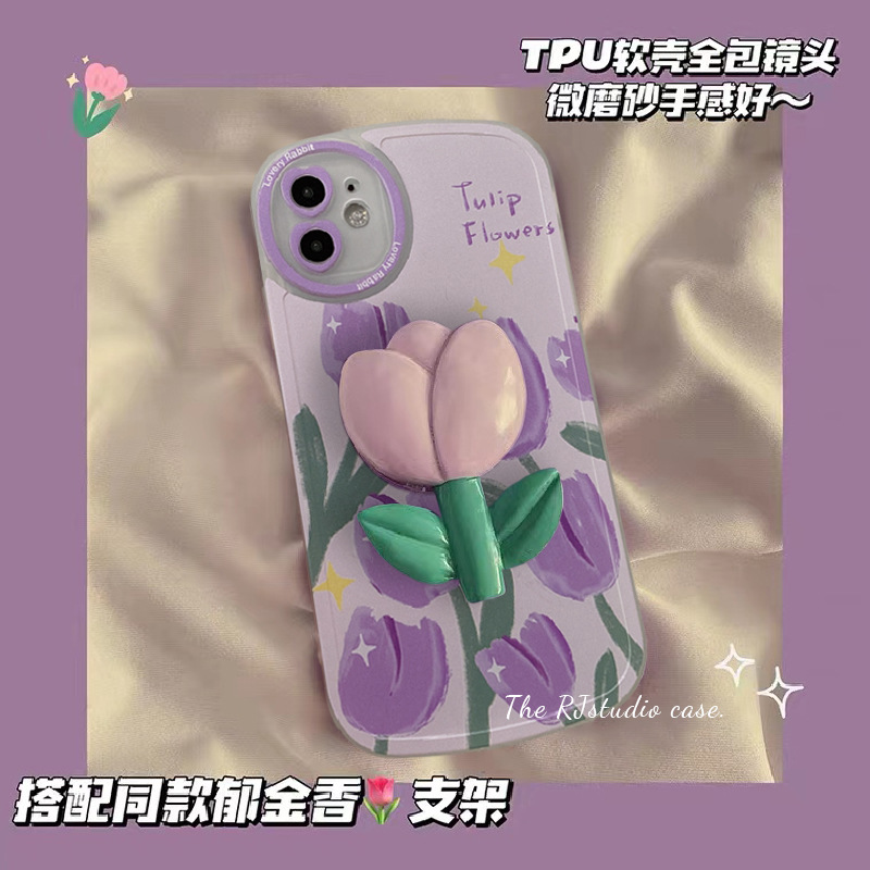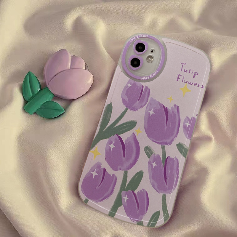 标题:シンプルパープルの油絵チューリップスタンドiPhone 11/12/13 promax携帯ケースxsは7/8 pに対応