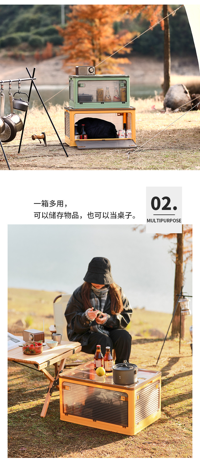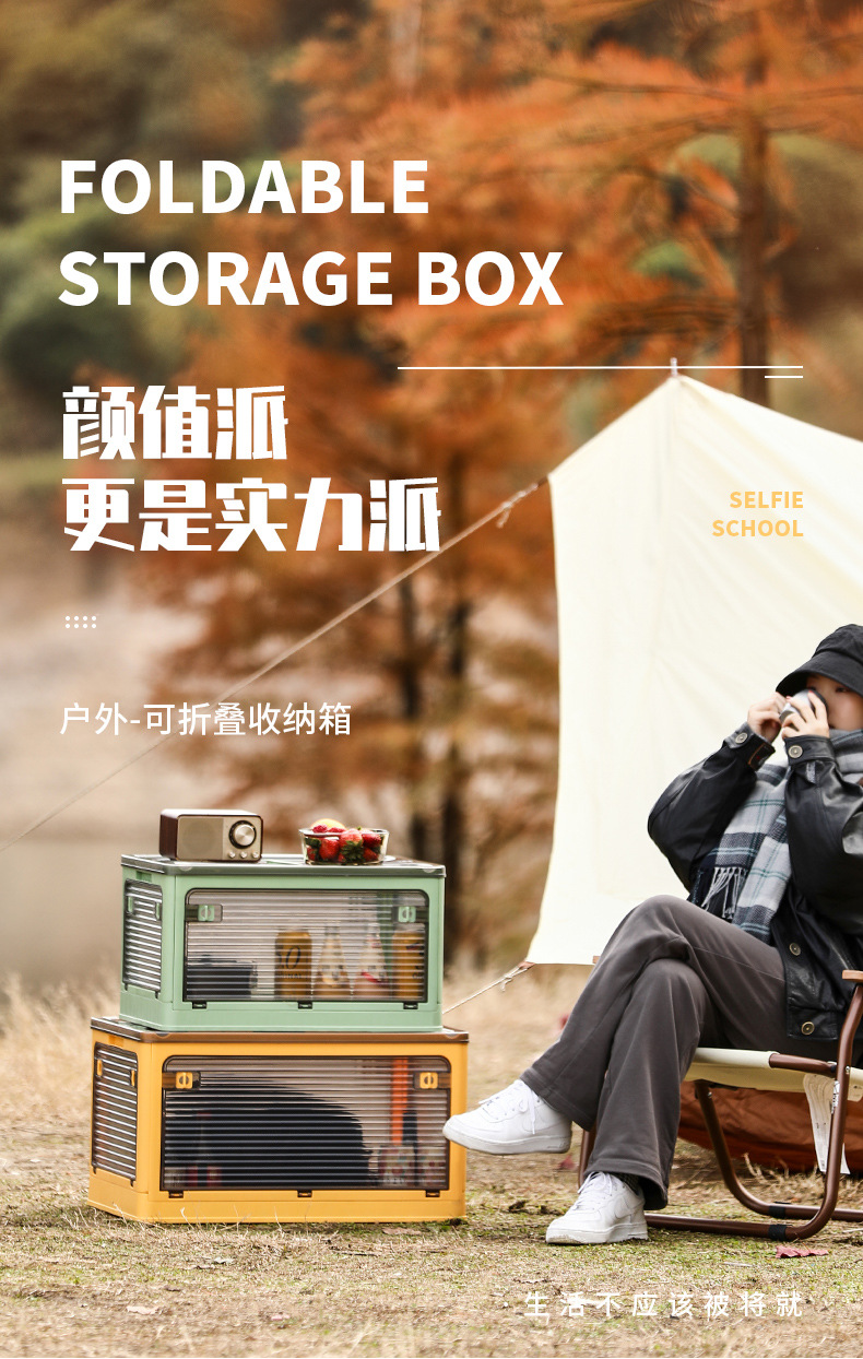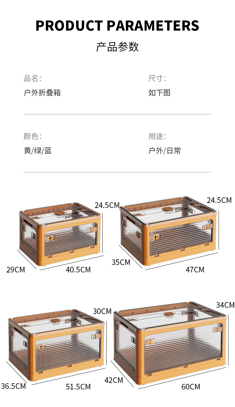 标题:户外折叠收纳箱汽车用后备箱家用野营露营衣物车载储物透明整理箱