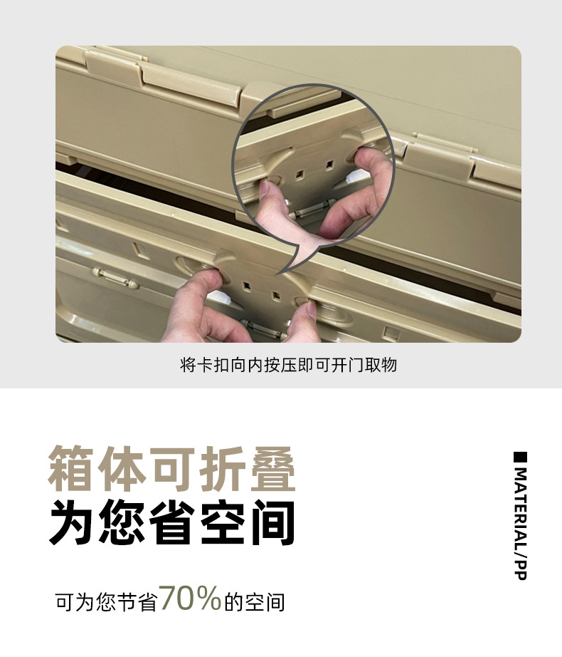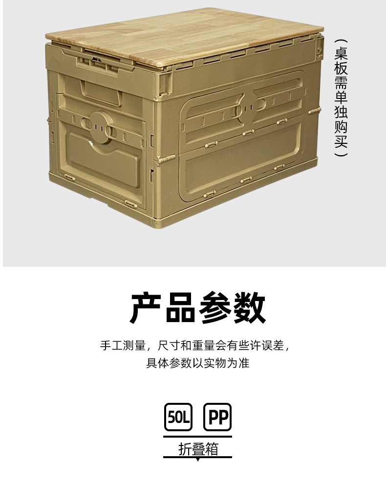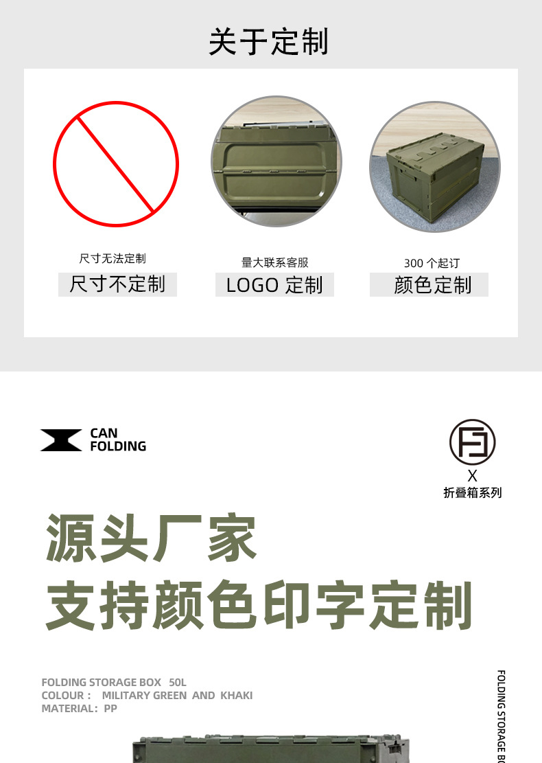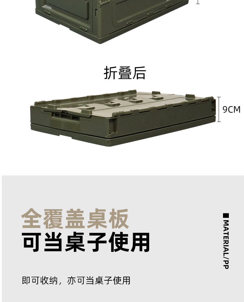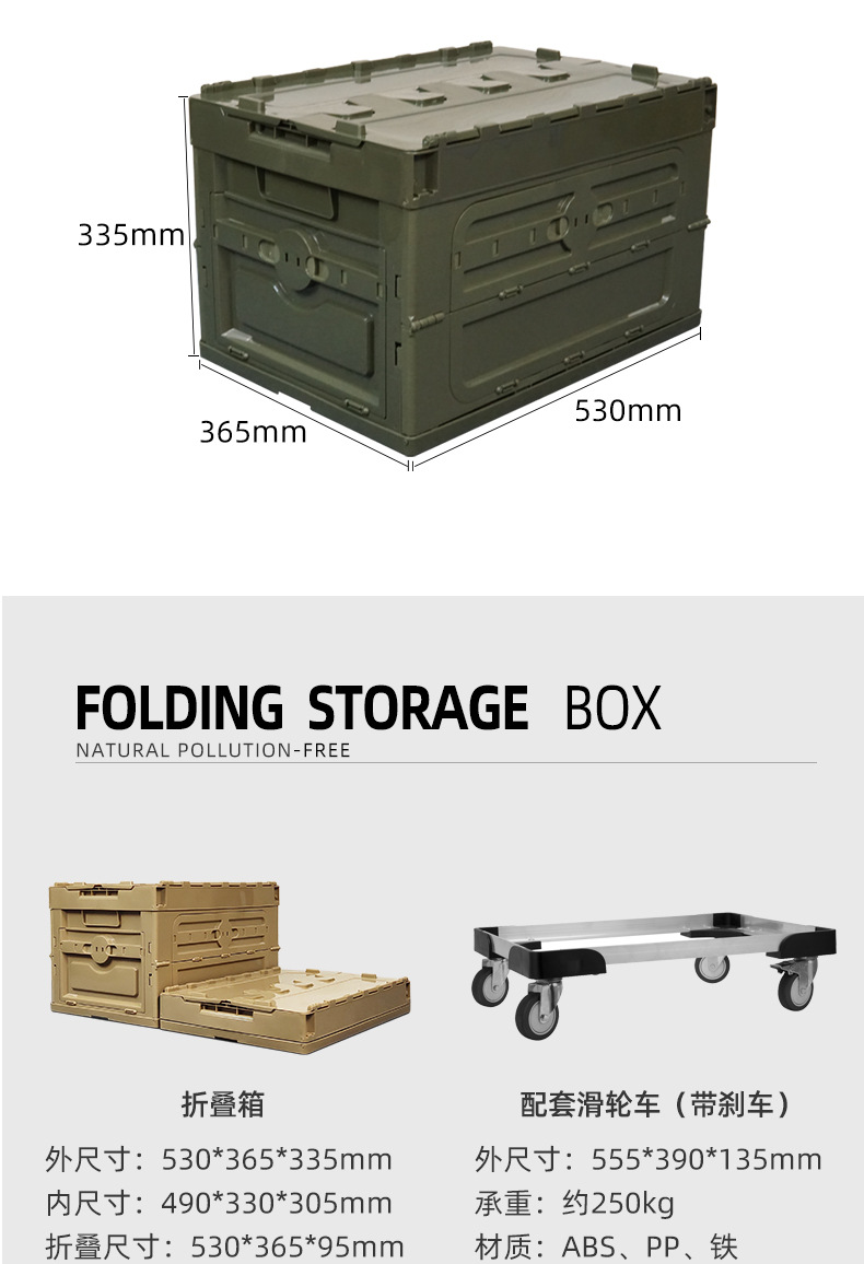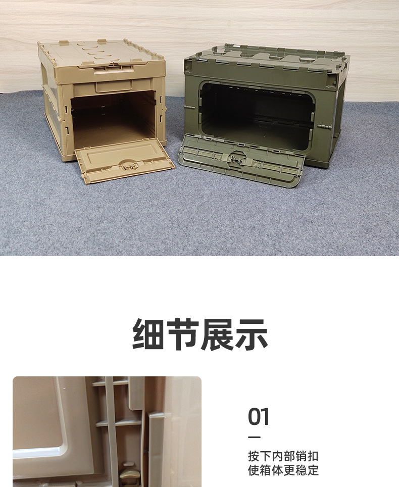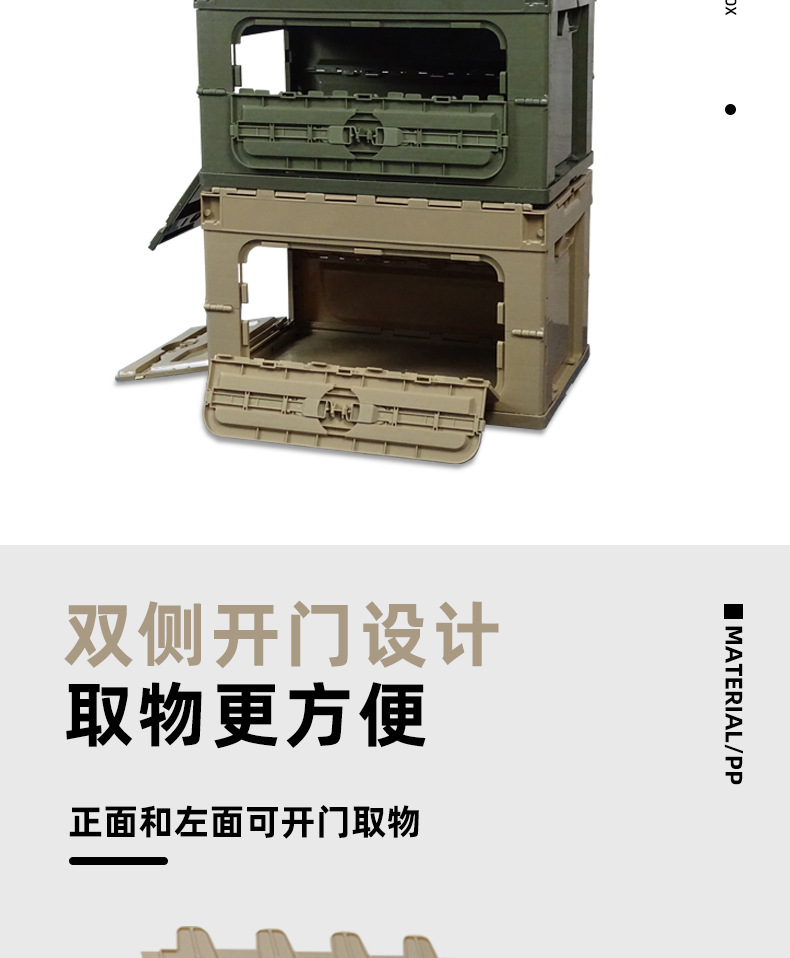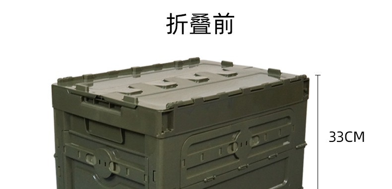 标题:塑料折叠箱50L日式家居车载军绿侧开门整理箱户外露营箱