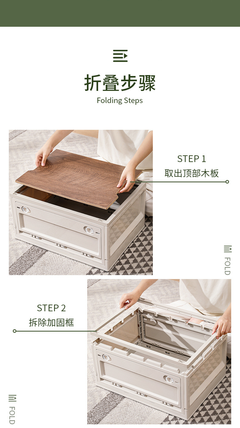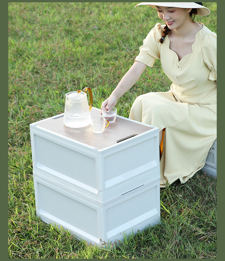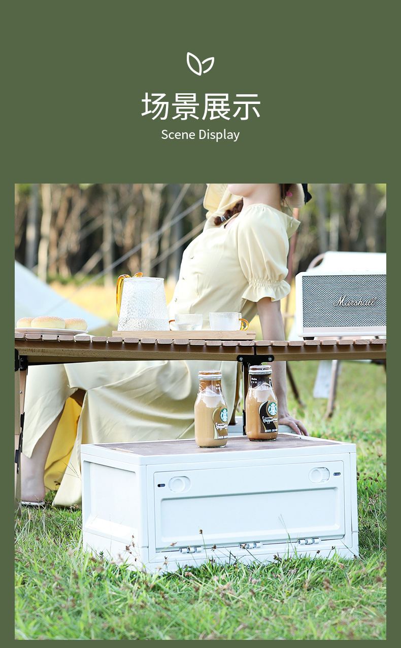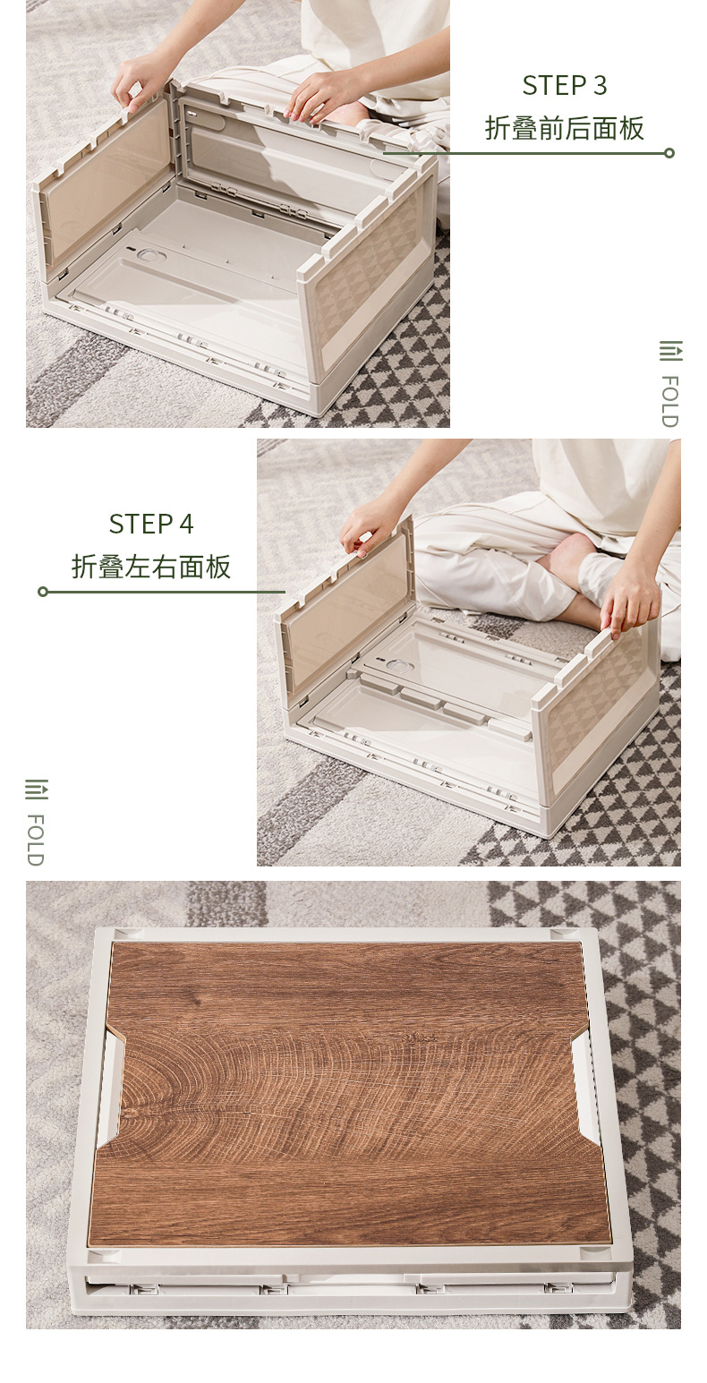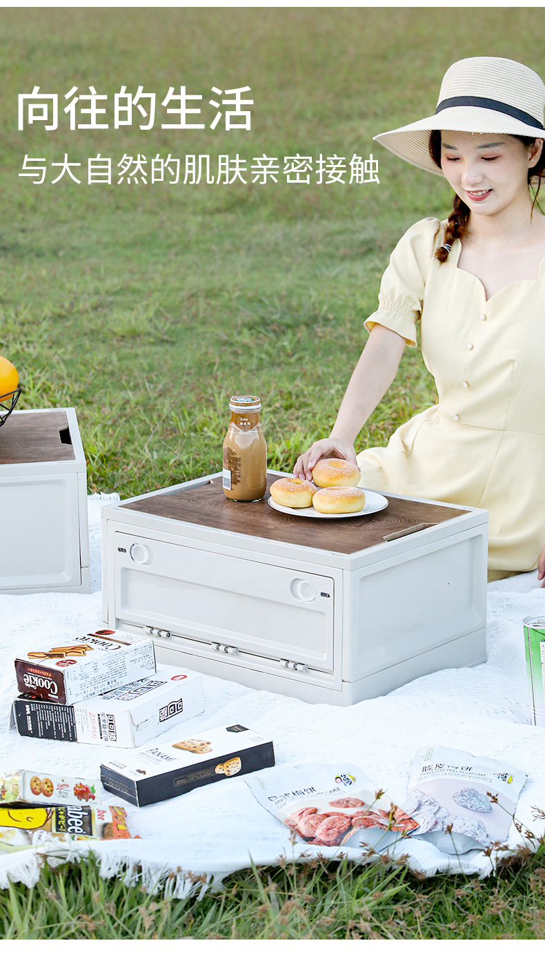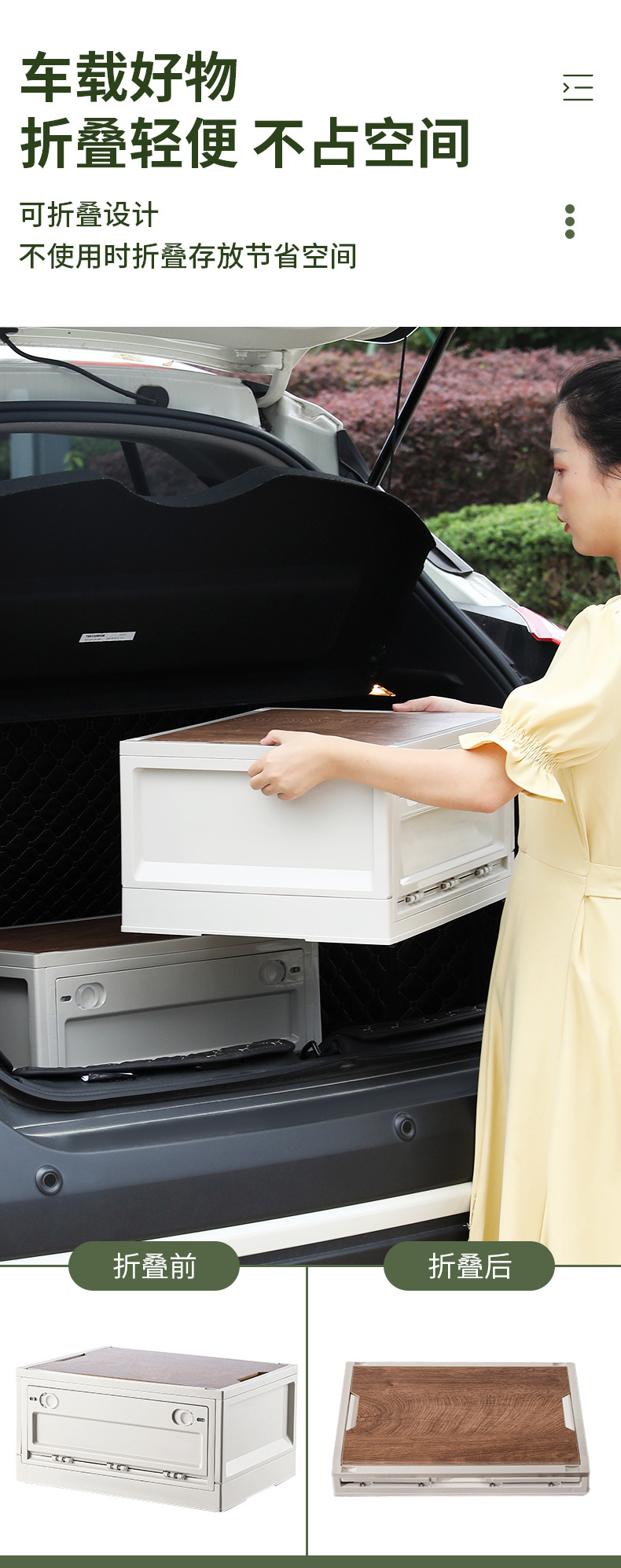 标题:日式侧开居家日用整理箱户外多功能露营收纳箱塑料木盖车载折叠箱