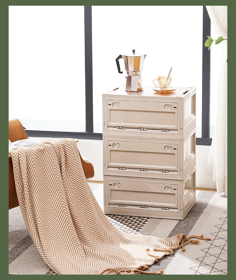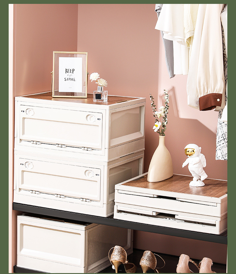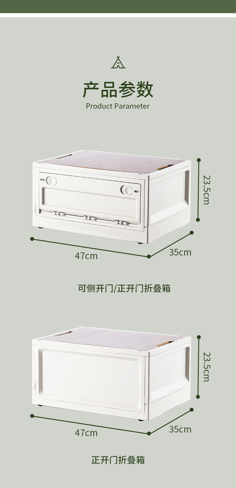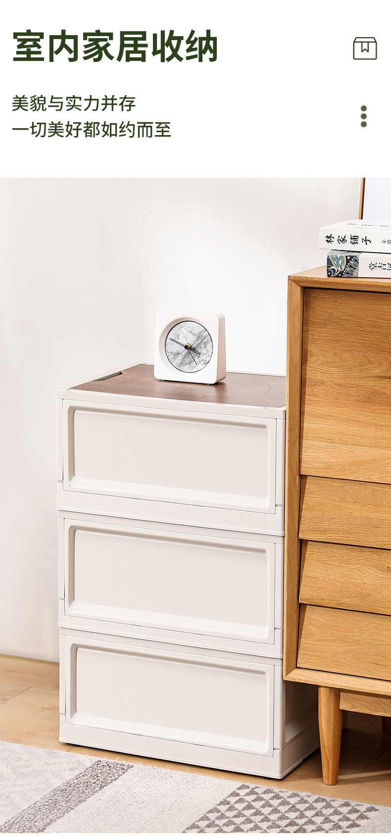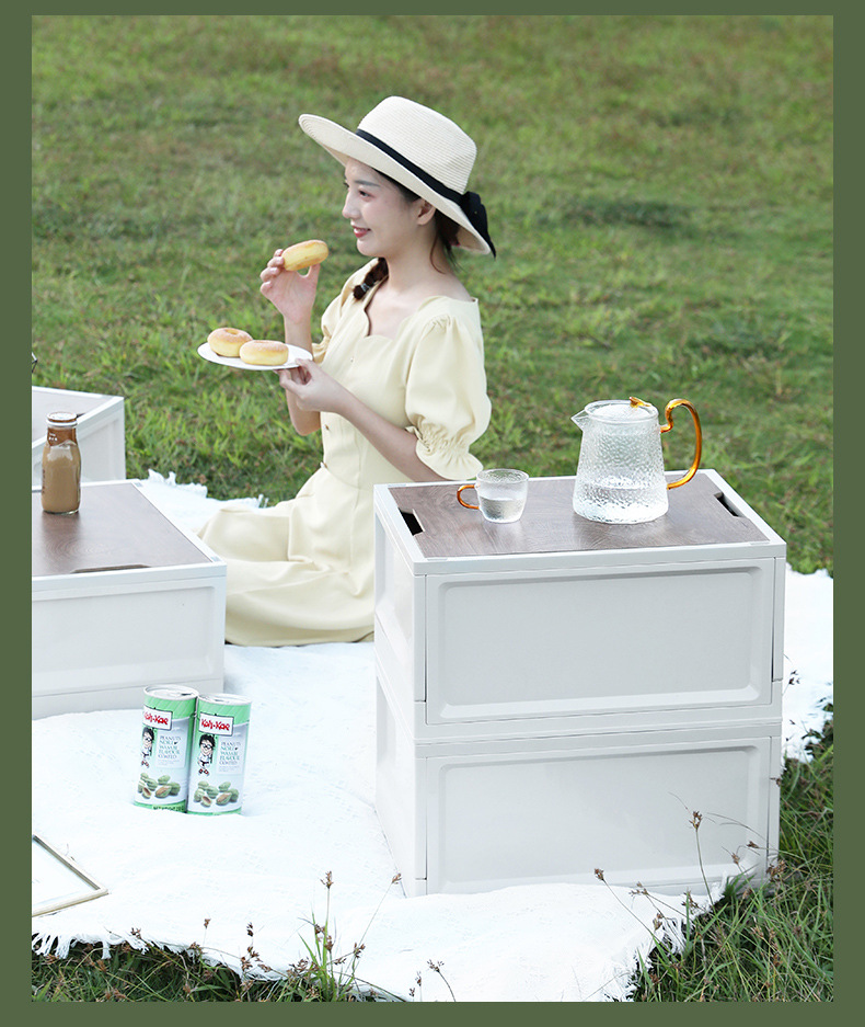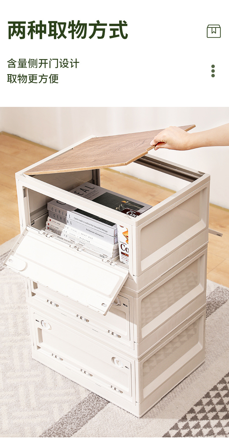 标题:日式侧开居家日用整理箱户外多功能露营收纳箱塑料木盖车载折叠箱