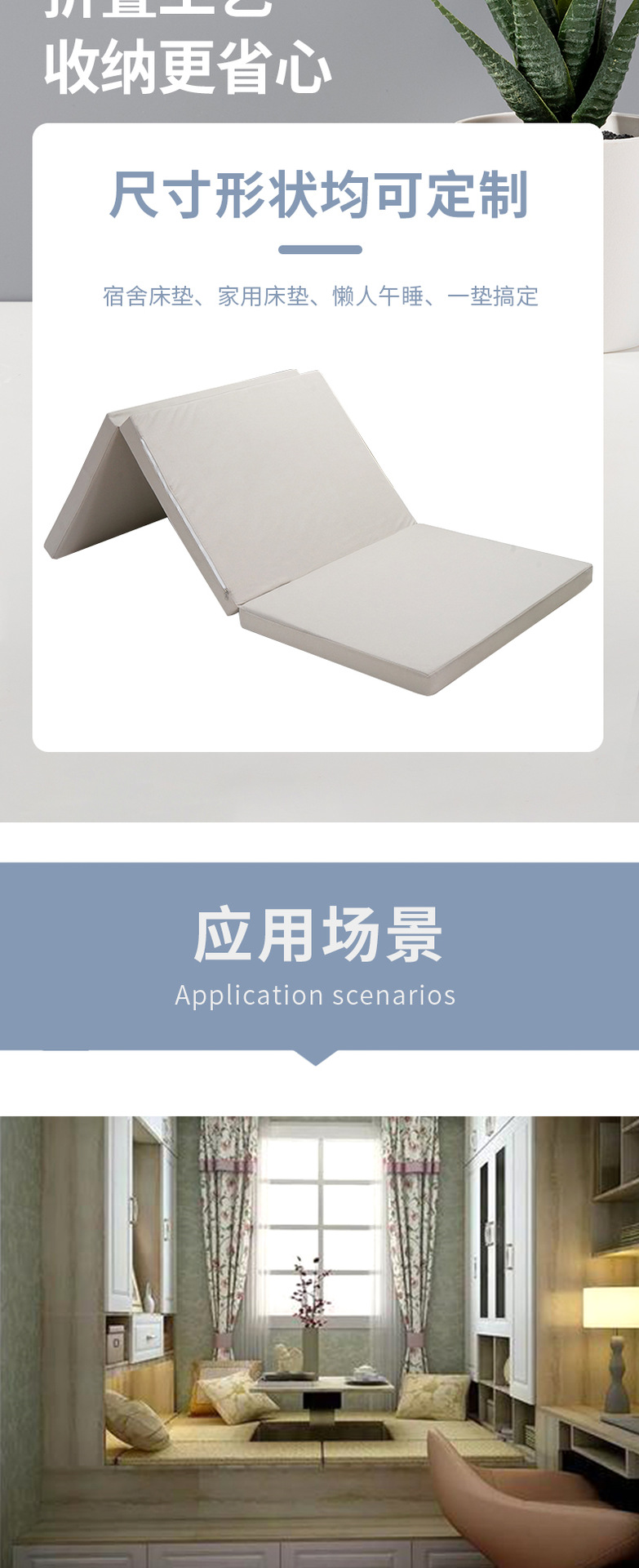 标题:厂家直供多尺寸折叠床垫家用宿舍榻榻米高弹海棉公寓床垫