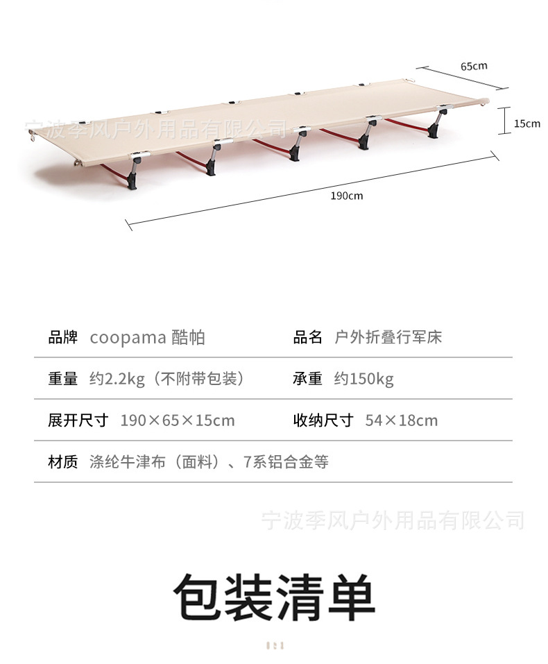 标题:露营折叠行军床铝合金户外沙滩超轻便携午休办公室单人床厂家销售