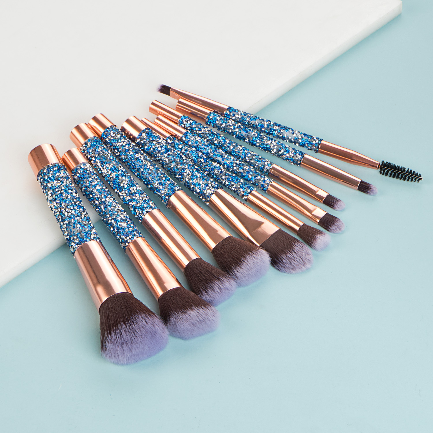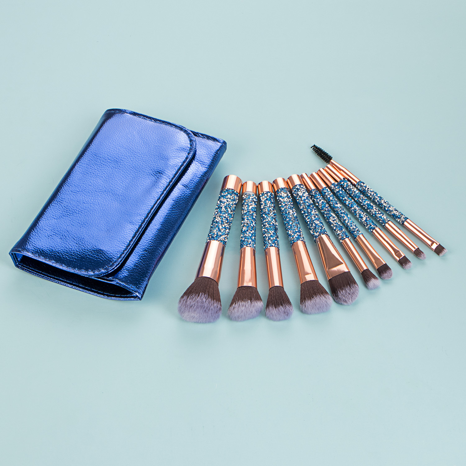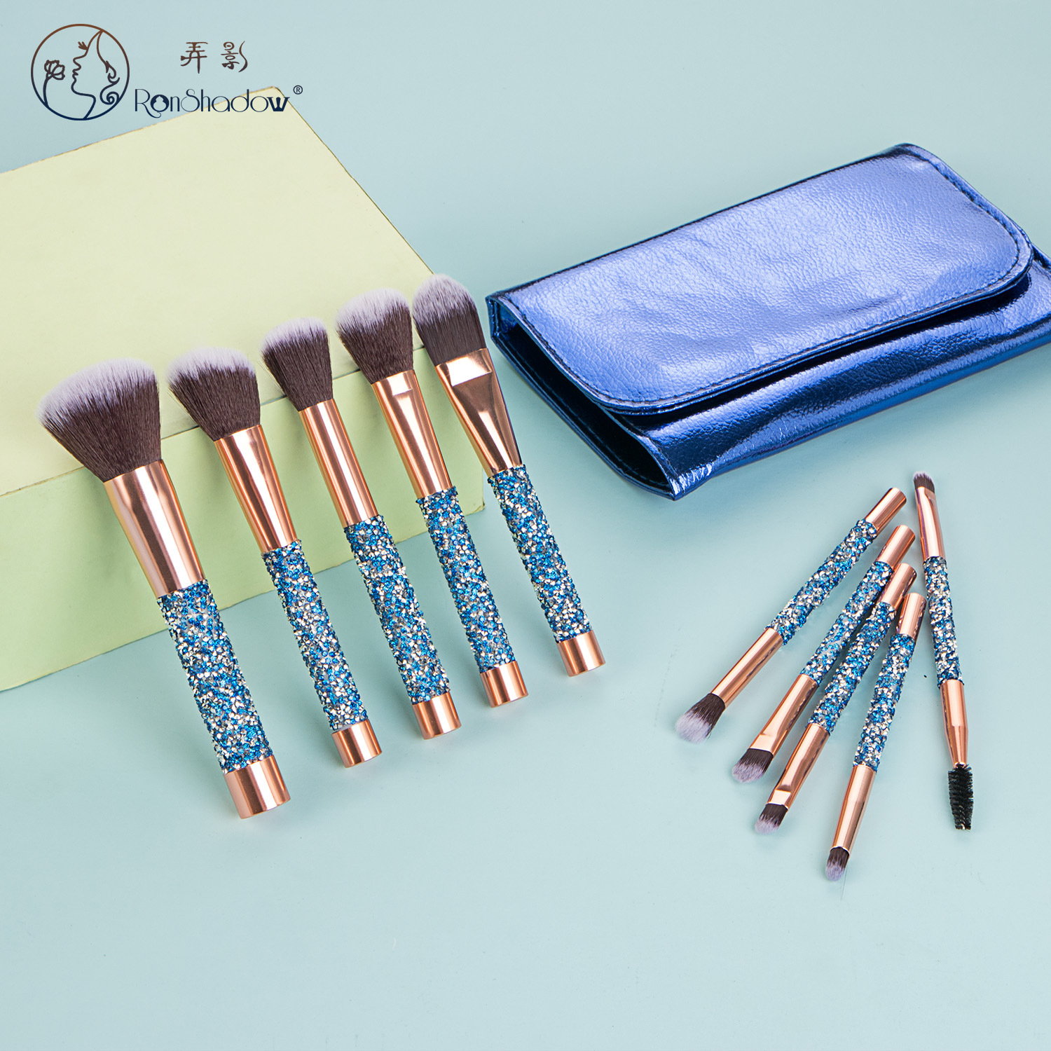 标题:弄影 10支化妆刷套装镶钻 散粉腮红修容眼影刷 外贸 工厂 化妆包