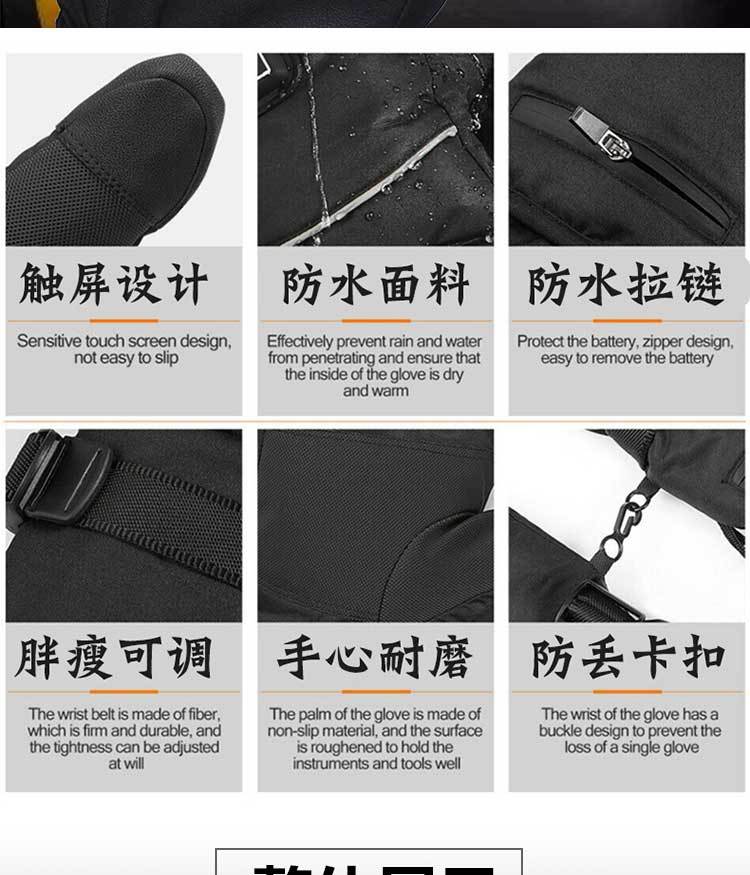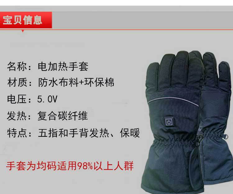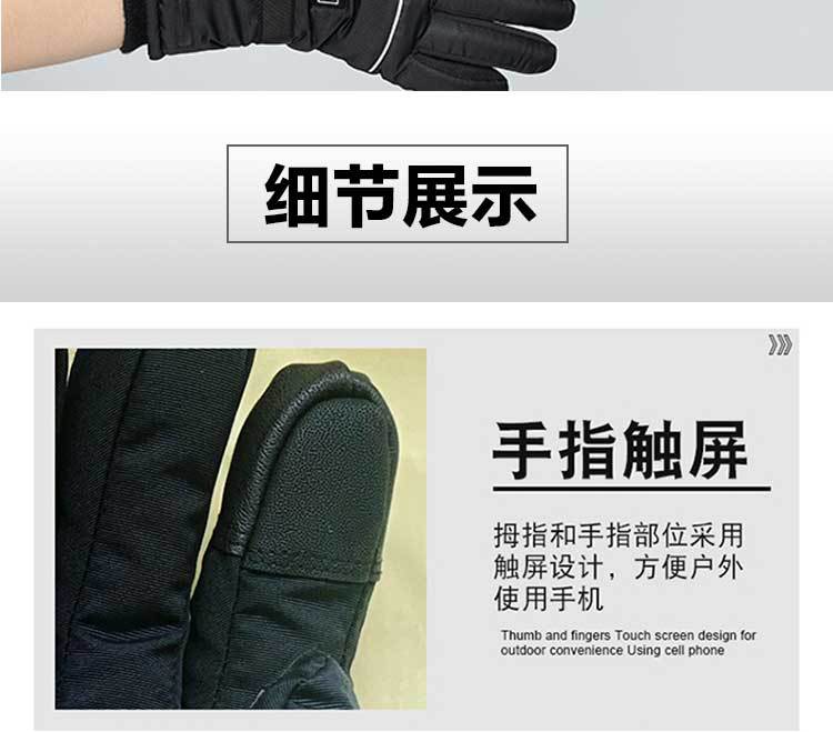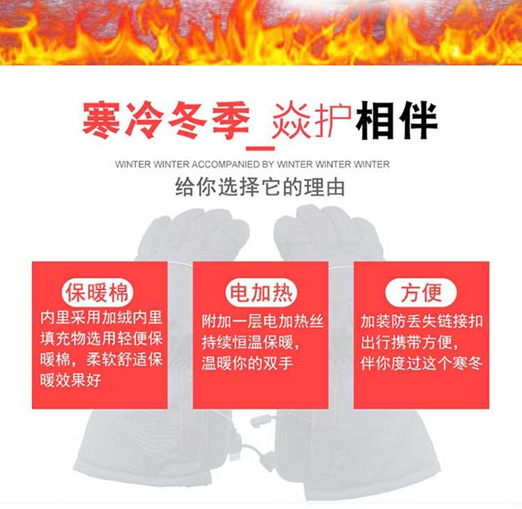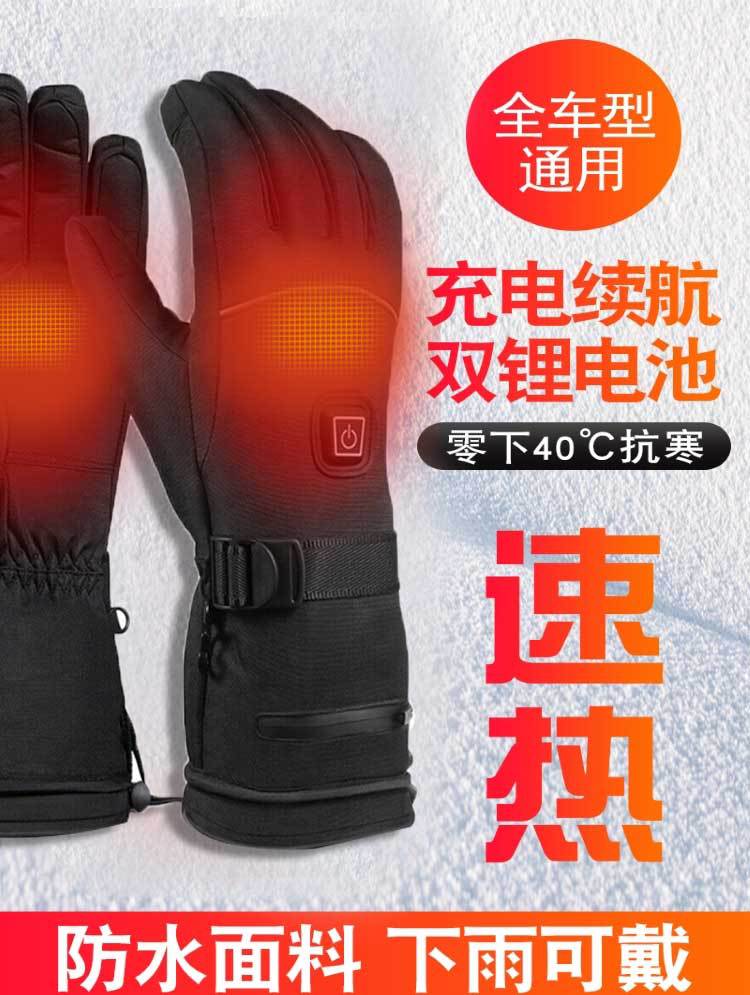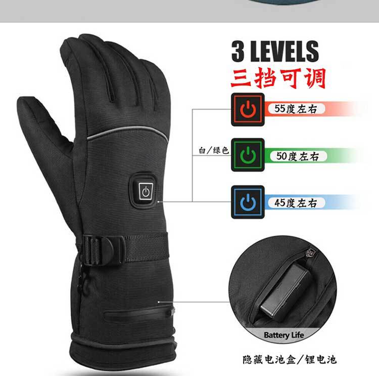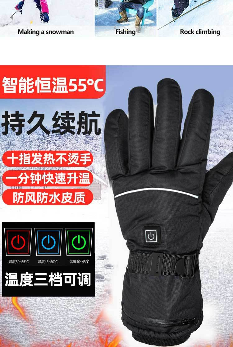 标题:加热手套摩托车骑行三档调温发热滑雪防寒手套加厚保暖电加热手套