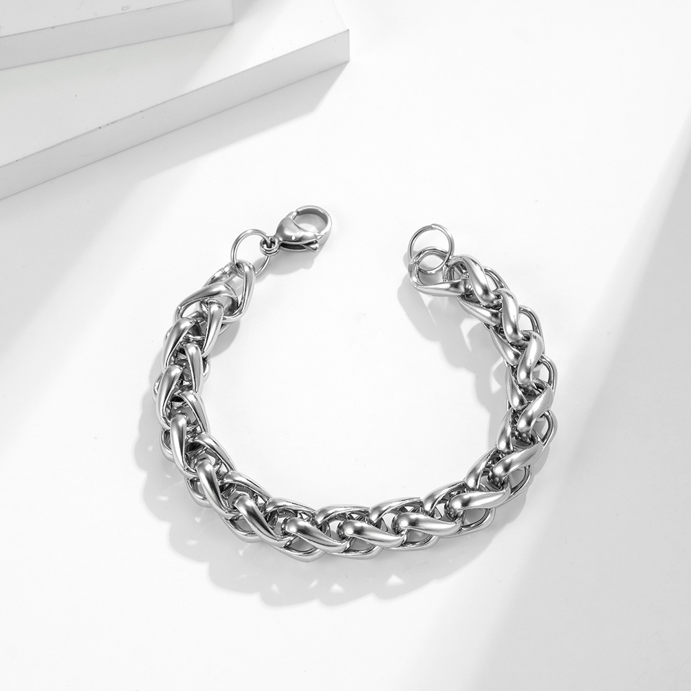 标题:Simple Japanese and Korean style titanium steel keel chain bracelet with cool personality for men and women fashionable people wearing stainless steel chain