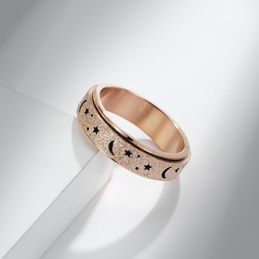 标题:Frosted hollow star moon stainless steel rotating ring relieves pressure, titanium steel women's ring jewelry