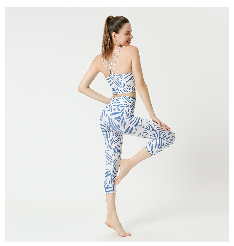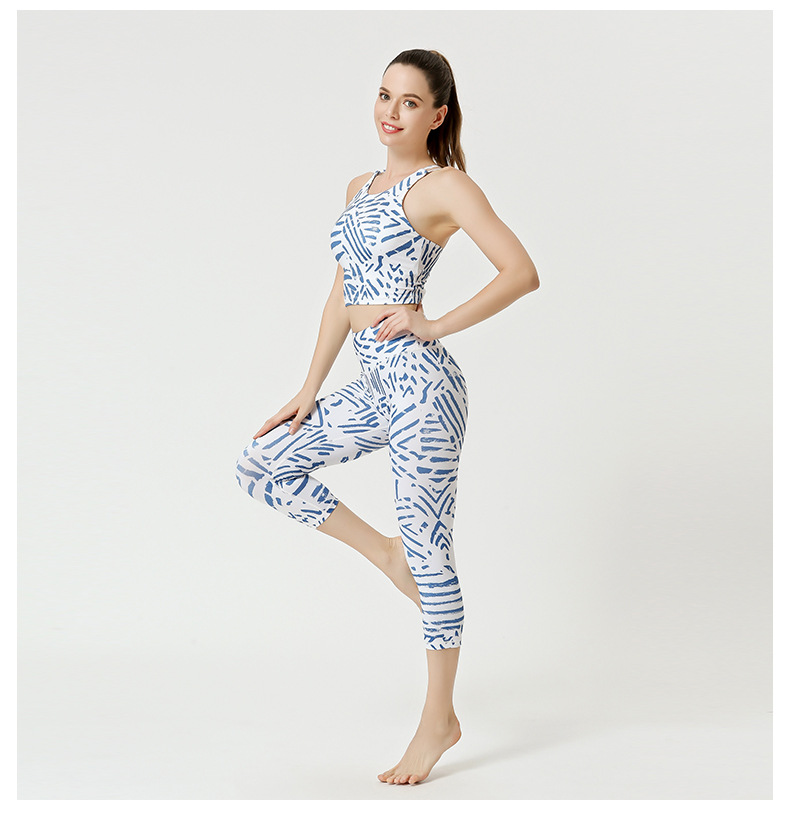 标题:New style yoga suit Women's quick drying printing yoga pants Back exercise vest Fitness yoga suit
