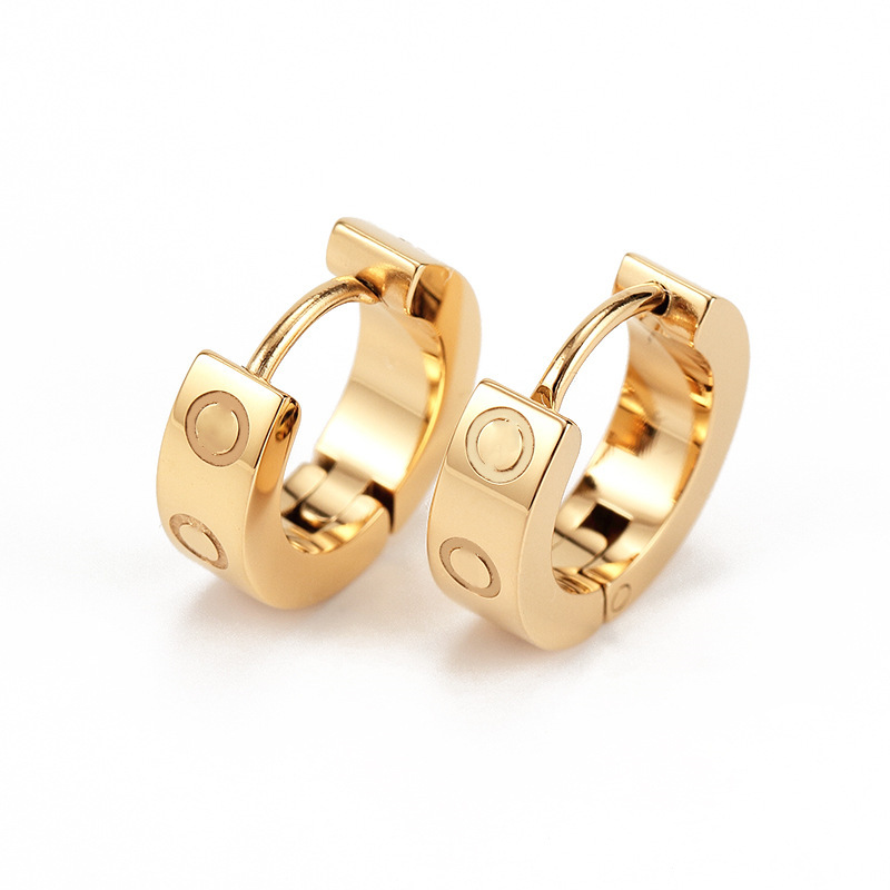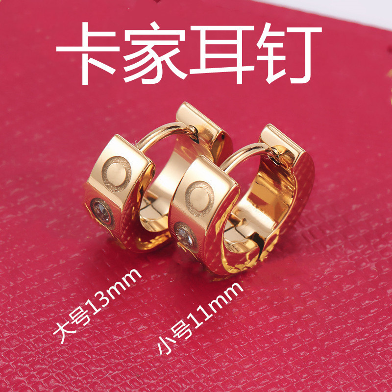 标题:开口耳钉钛钢时尚潮流欧美流行耳环卡家耳钉带钻18K彩金现货耳环
