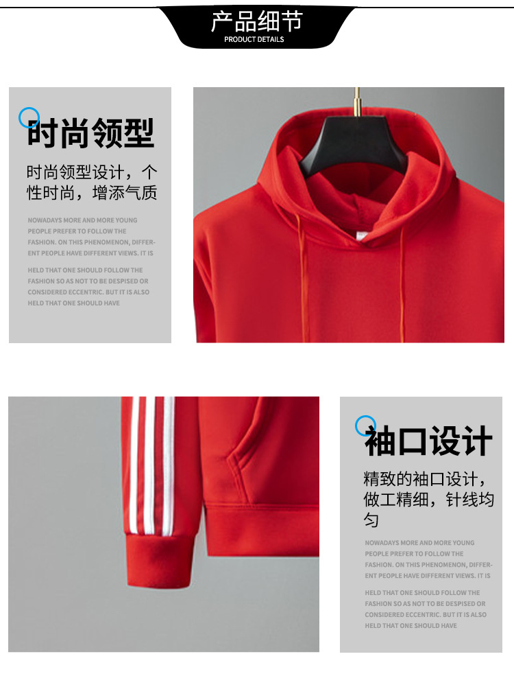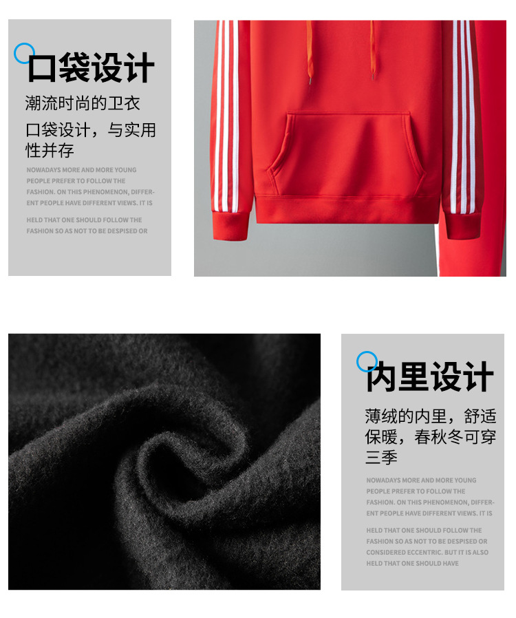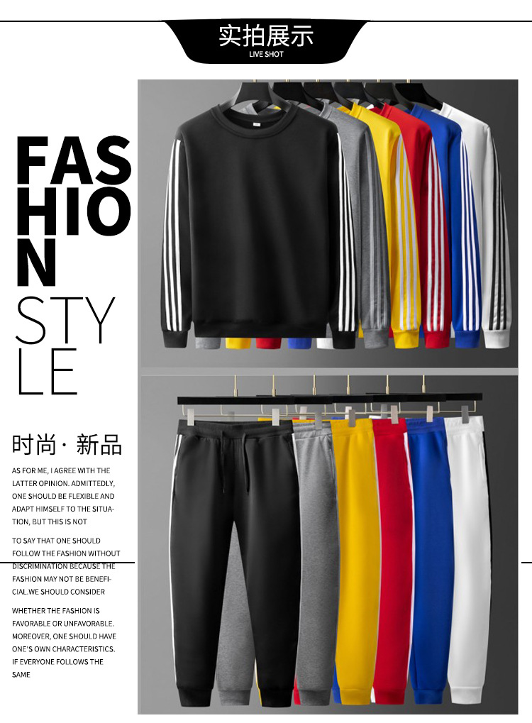 标题:厂家直供印制休闲运动套装男潮帅气三条杠卫衣男运动服两件套春秋