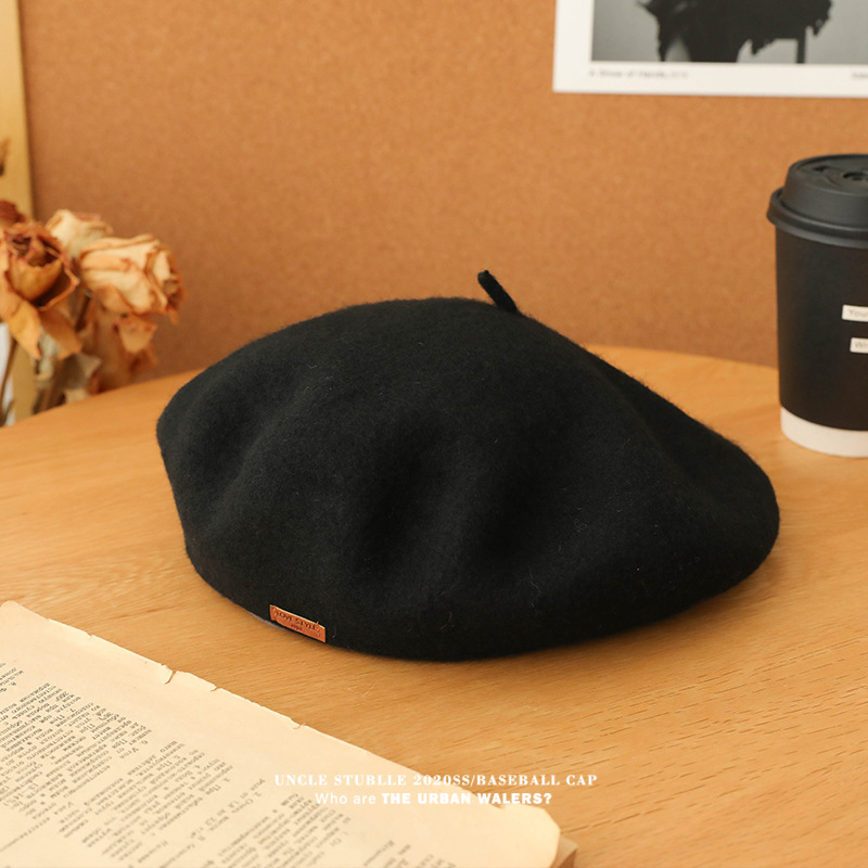 标题:羊毛贝雷帽 画家帽 女生时尚保暖帽 秋冬季毛呢帽子 圣诞节礼物 贝雷帽