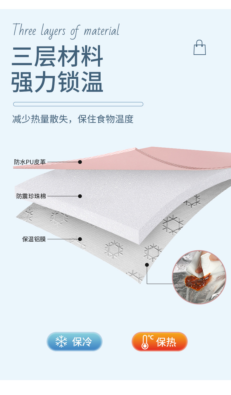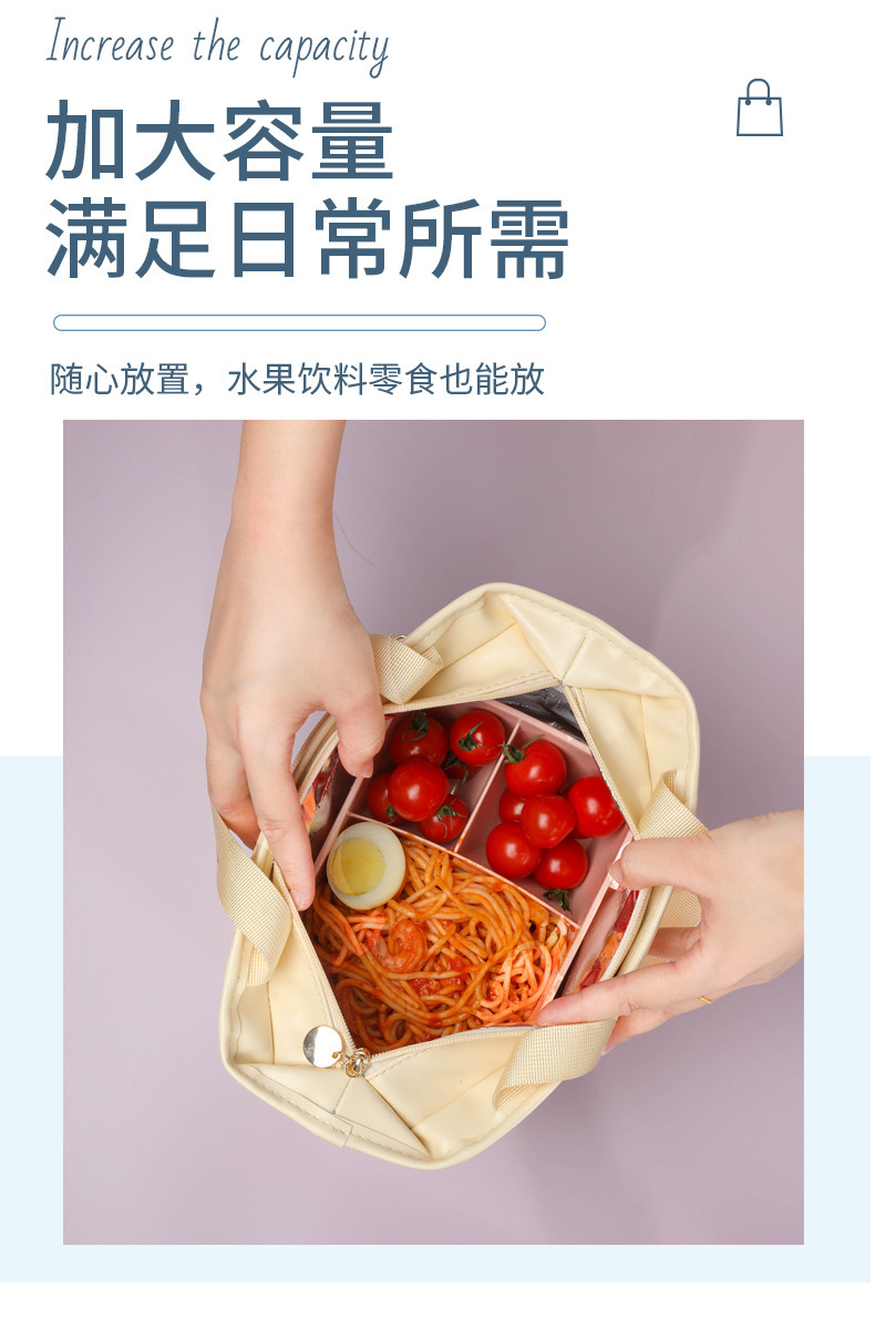标题:便携保温便当盒 防水手提包 加厚保温袋子 野餐包 学生上班族带饭便当包 PU皮材质