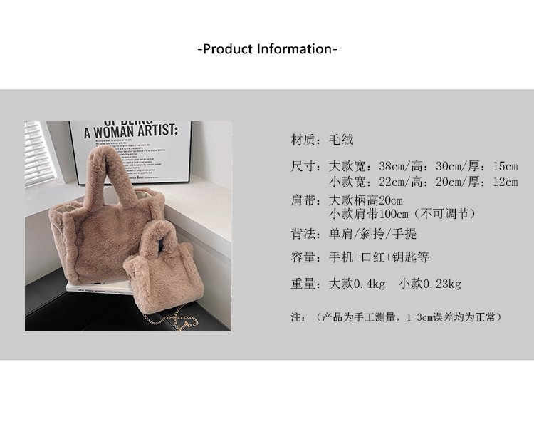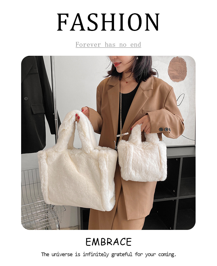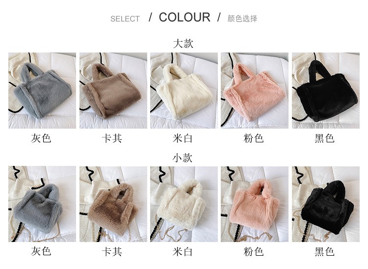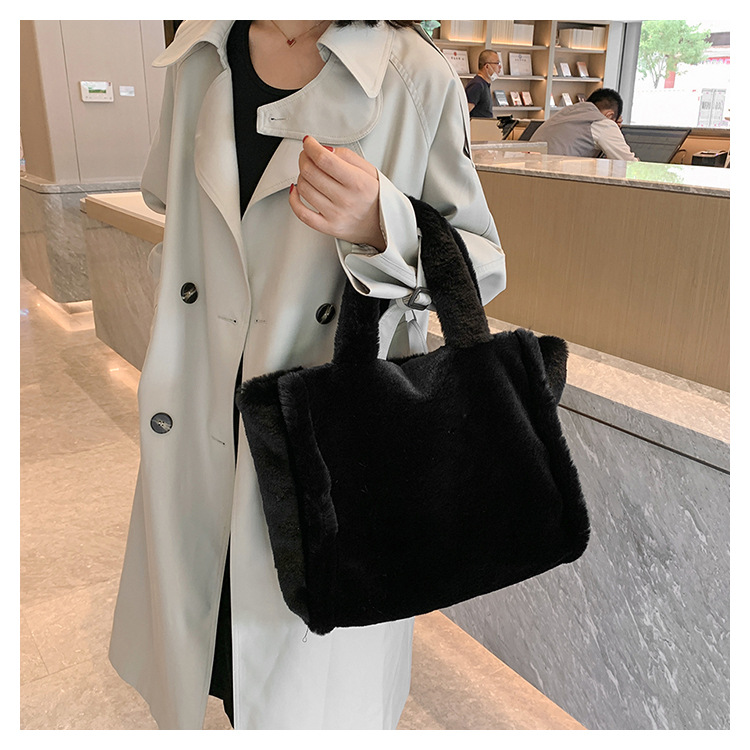 标题:秋冬新款毛绒包 简约百搭手提包 大容量托特包 女包 大码小码 斜挎包